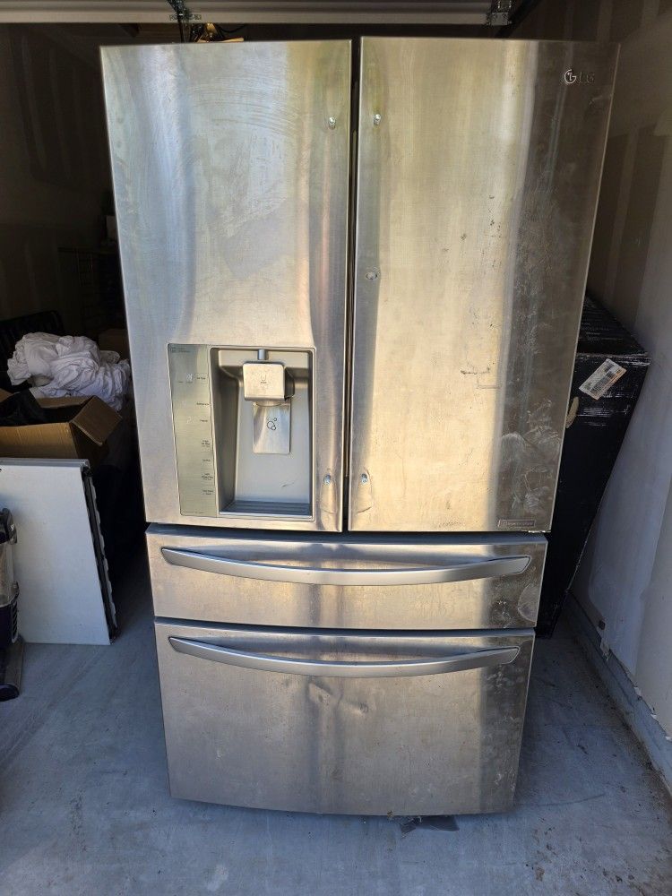 the refrigerator doesn't gets cold. The compressor looks to be in good condition and is functioning properly, but I just don't have the means to keep trouble shooting or pay someone to fix it and I need it gone. I think there's a leak somewhere. The door handles got lost somewhere in between moves, but there's no missing parts inside. There will be no assistance with moving the refrigerator. You have to come and get it yourself if interested.