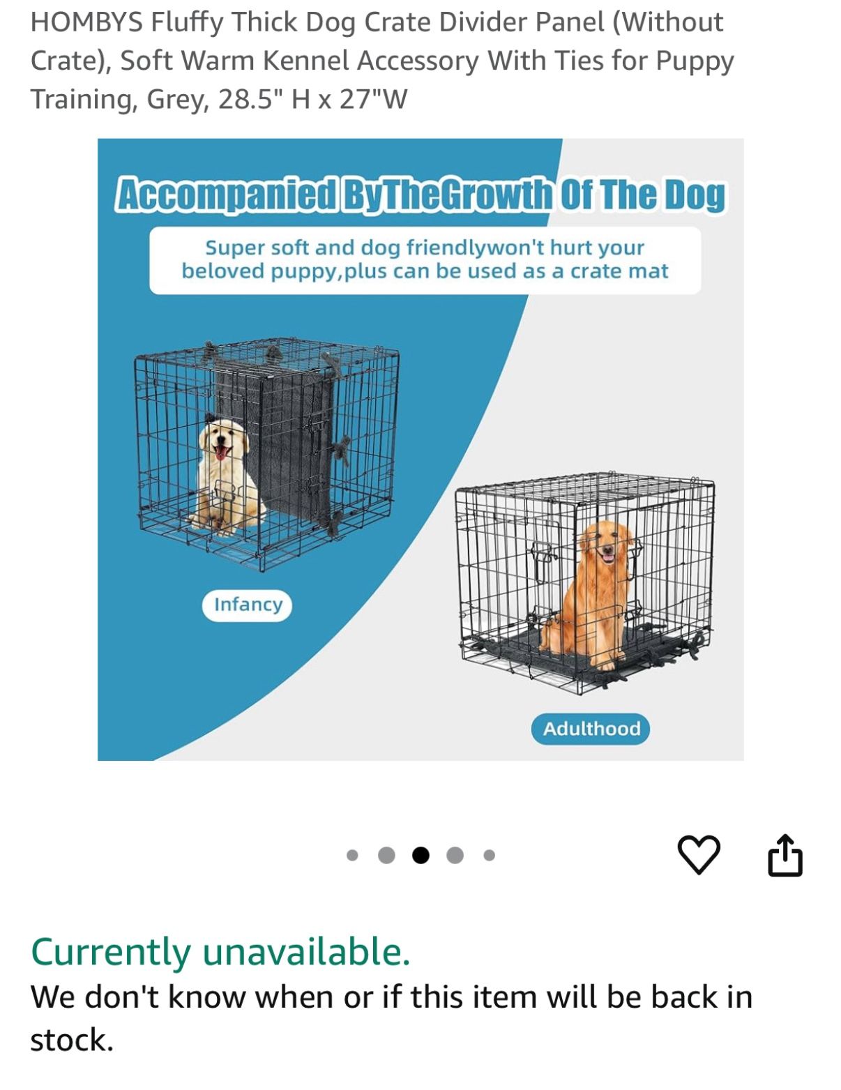 Never used, brand New. Can't return Our puppy grew faster than we could use this HOMBYS Fluffy Thick Dog Crate Divider Panel (Without Crate), Soft Warm Kennel Accessory With Ties for Puppy Training, Grey, 28.5" H x 27"W