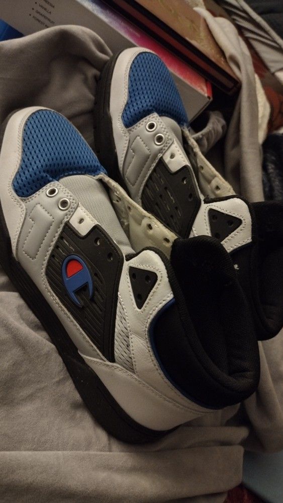 Champion basketball shoes size 7 white only worn twice .missing laces you can buy them in red ,blue , white ,black the choice is your.
