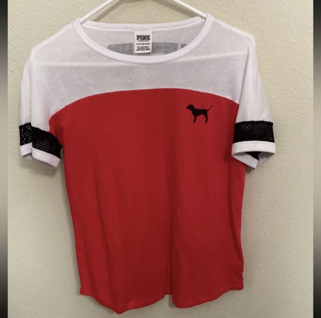 VS PINK T-shirt Breathable net knit trim sleeves LOVE PINK logo back Size XS