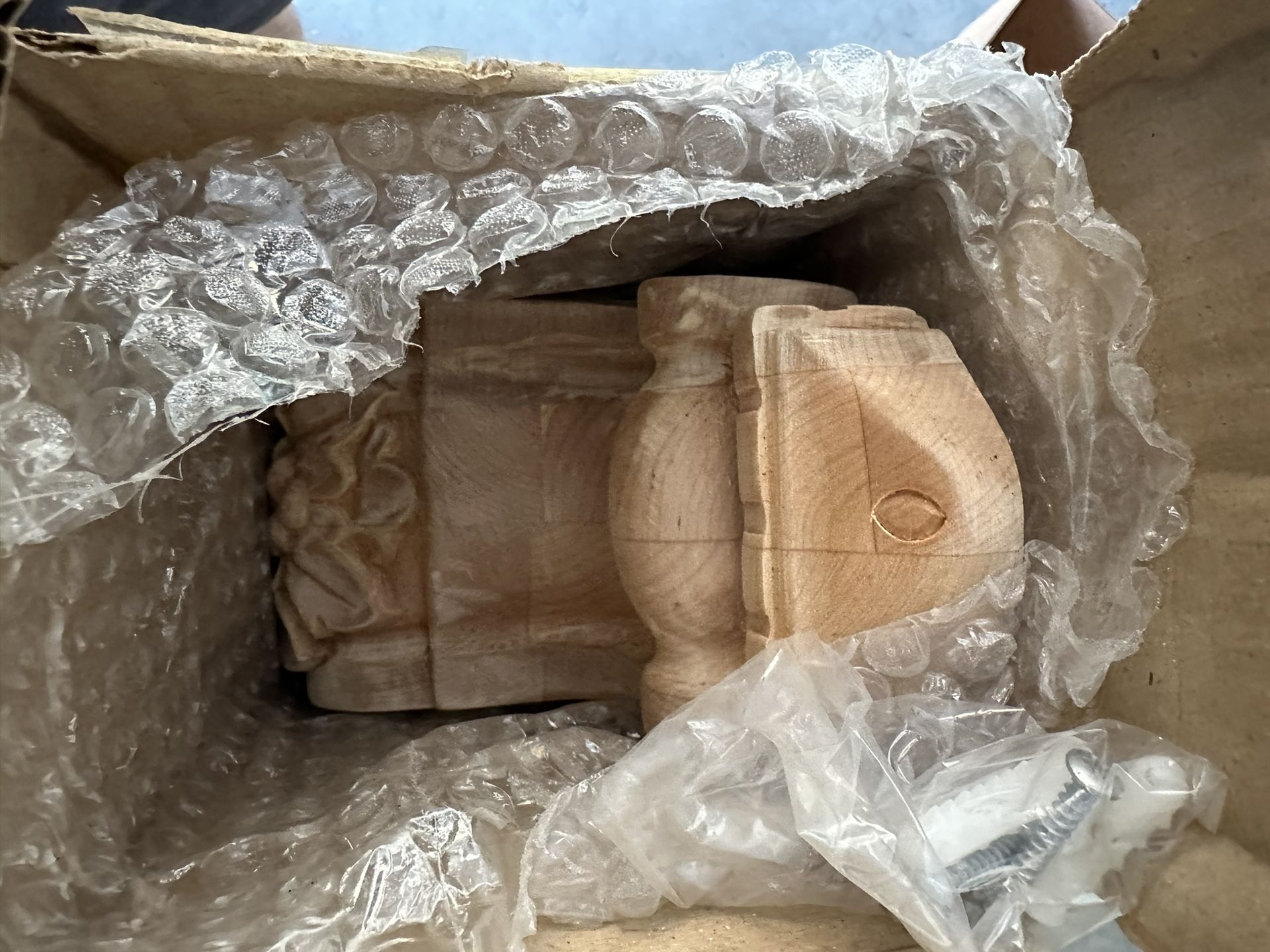 Item specifics Item Height: 10.00" Item Depth: 5-1/2 Item Width: 5.00" Type : Corbel Color: Natural Finish: Unfinished Carvings have been polished with 320-grit paper and are ready The photo with finished item is just for comparison and to show details
