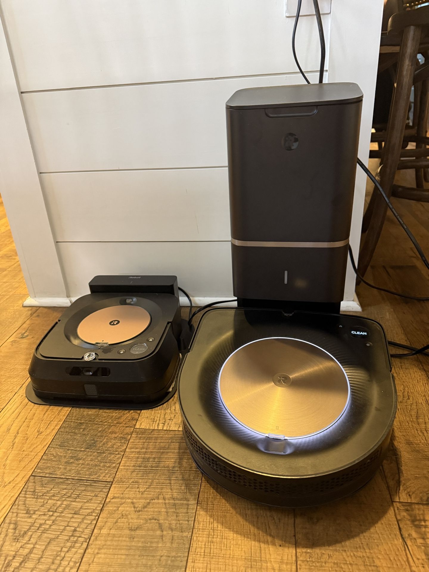 Used but in great condition. Does have some scuff marks on the vacuum and mop. I replaced the brushes on the vacuum and I’m including the following replacement parts - a new filter, corner brush, collection bag, all manuals, dust pad, mop pad, cleaning tool, and mini screw driver so you can set up and get to cleaning. iRobot Roomba s9+ (9550) Robot Vacuum & Braava jet m6 (6112) Robot Mop bundle - Black
