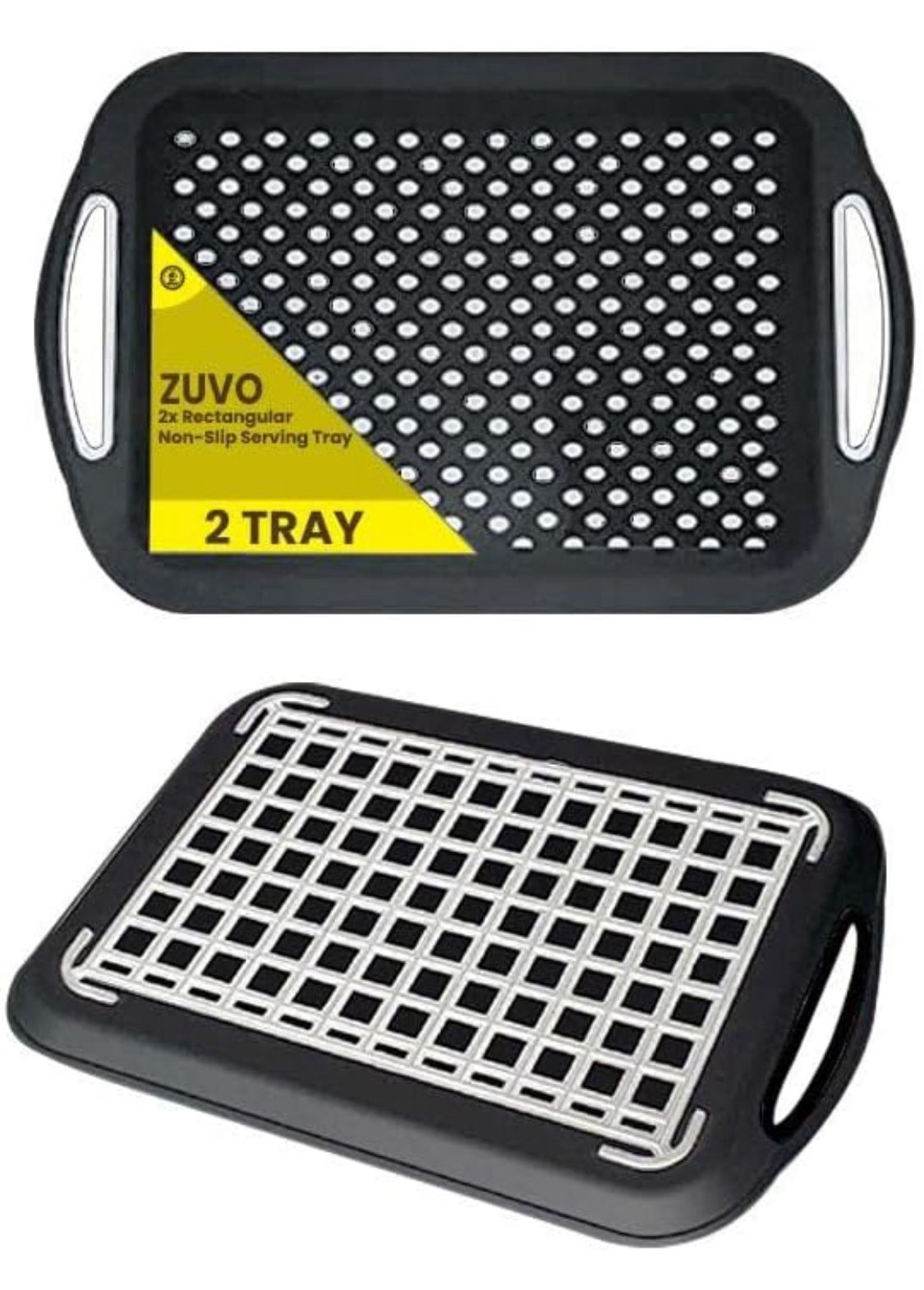 Anti-Slip Food Serving Tray with Handles (Set of 2) – BPA-Free Plastic, Lightweight & Durable – Non-Slip Couch Trays for Eating & Drinks (Grey