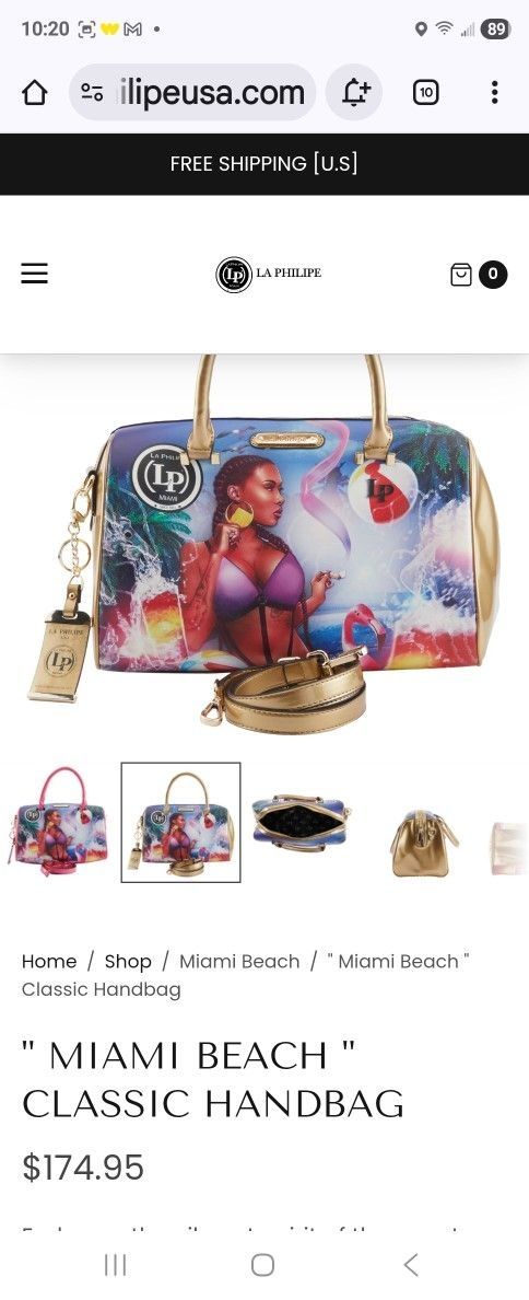 Capture the vibrant spirit of coastal living with the Miami Beach Handbag. Crafted from 100% premium PU leather, this eye-catching handbag features a lively design of a stylish woman enjoying the sun-drenched beach, embodying the essence of Miami’s tropical charm. This handbag adds a chic flair to any outfit, making it perfect for beach outings, brunches, or urban adventures. Let the Miami Beach Handbag be your go-to accessory, bringing a touch of sunshine and effortless style to your everyday life! Handle Drop Measurement - 5 ½ in Exterior Pockets - 1 rear Interior Pockets - 3 Additional items included - Keychain