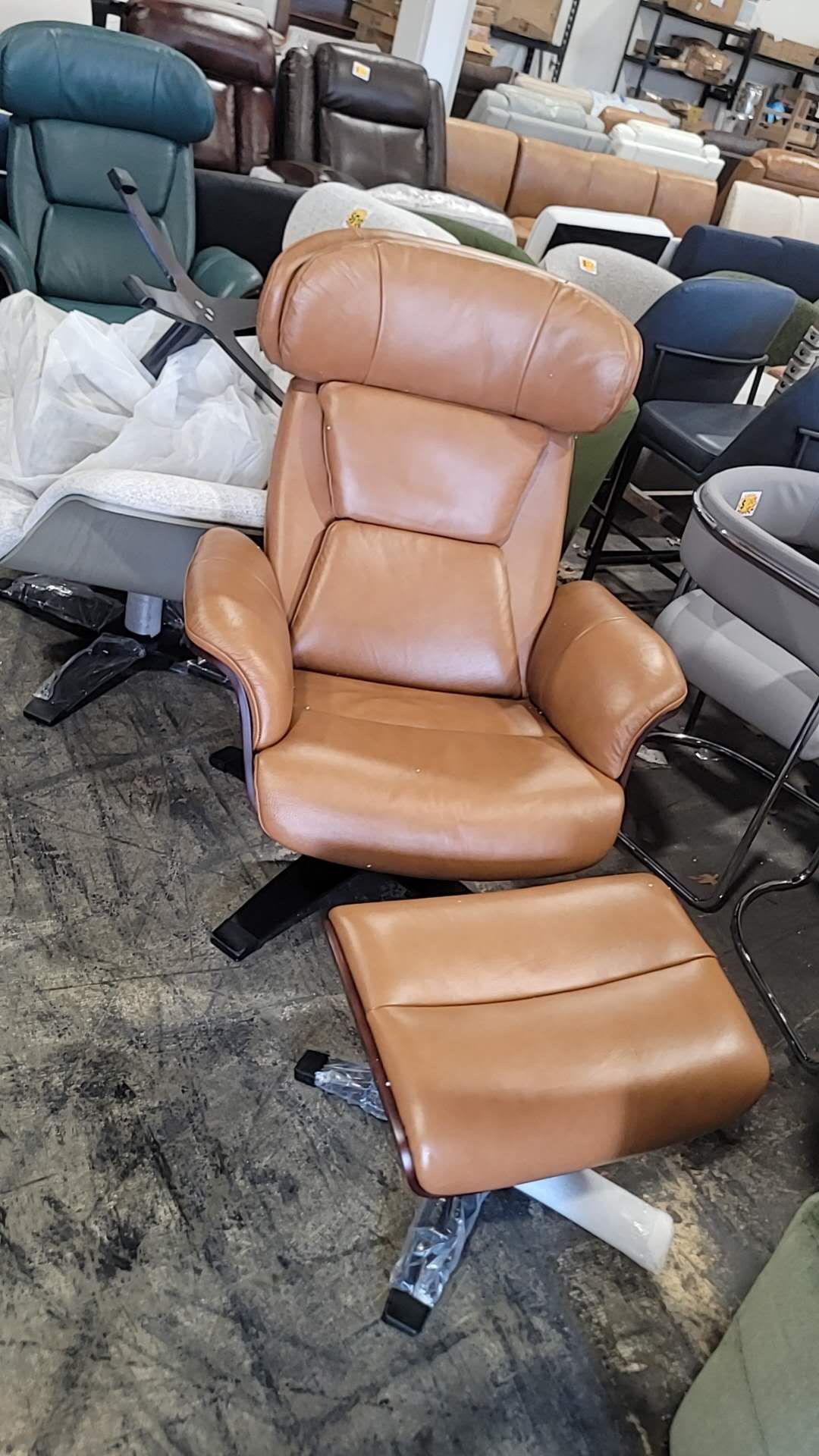 CHITA Swivel Recliner Chair with Ottoman Set & Adjustable Headrest, Leather Lounge Accent Arm Chairs for Living Room Bedroom, Saddle Brown $400