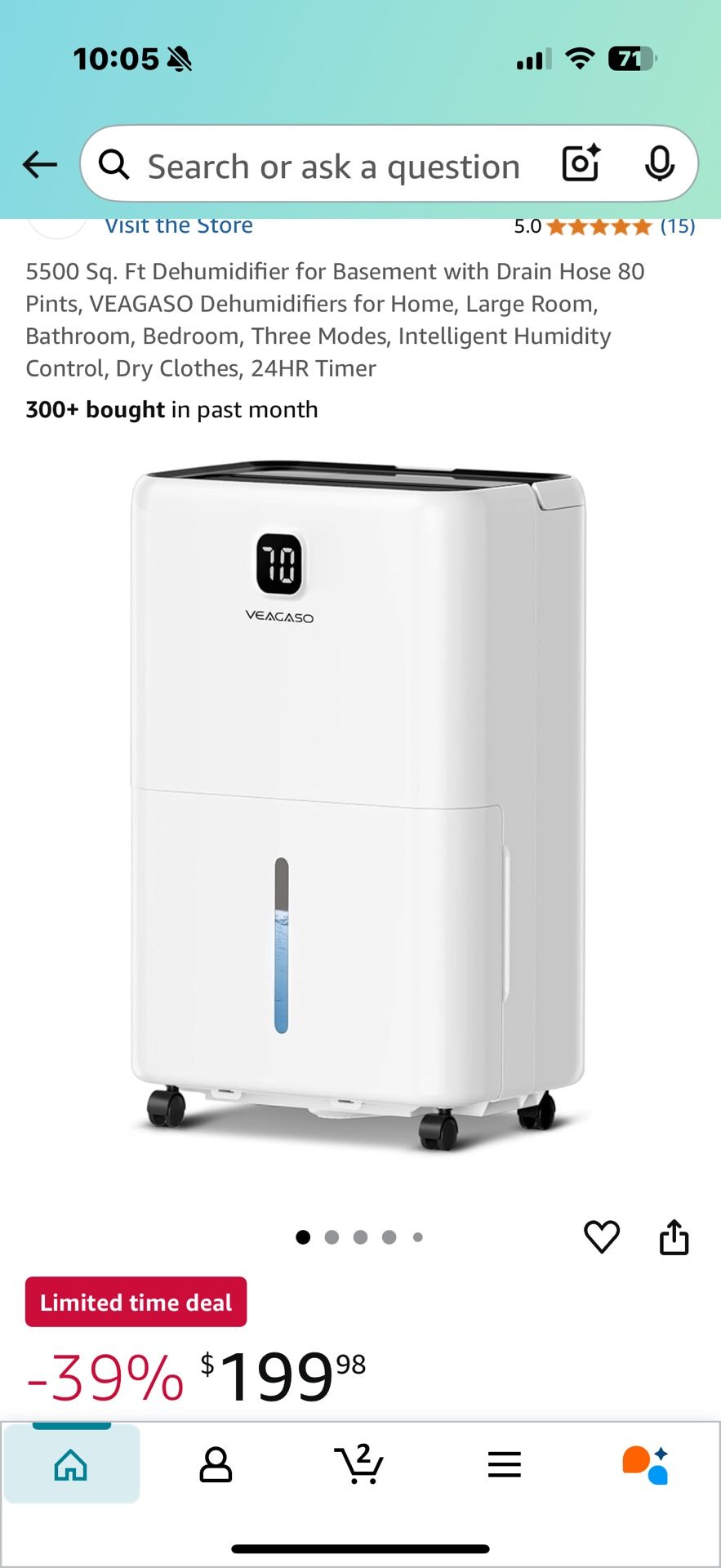 VEAGASO DEHUMIDIFIER / 5,000 sq ft.