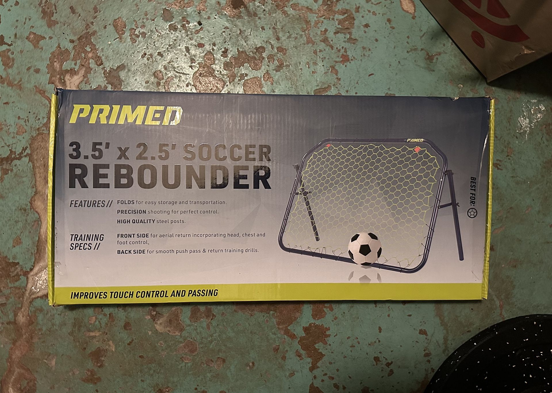 Primed soccer rebounder, 3.5x2.5. Never used or assembled. Price firm, no trades