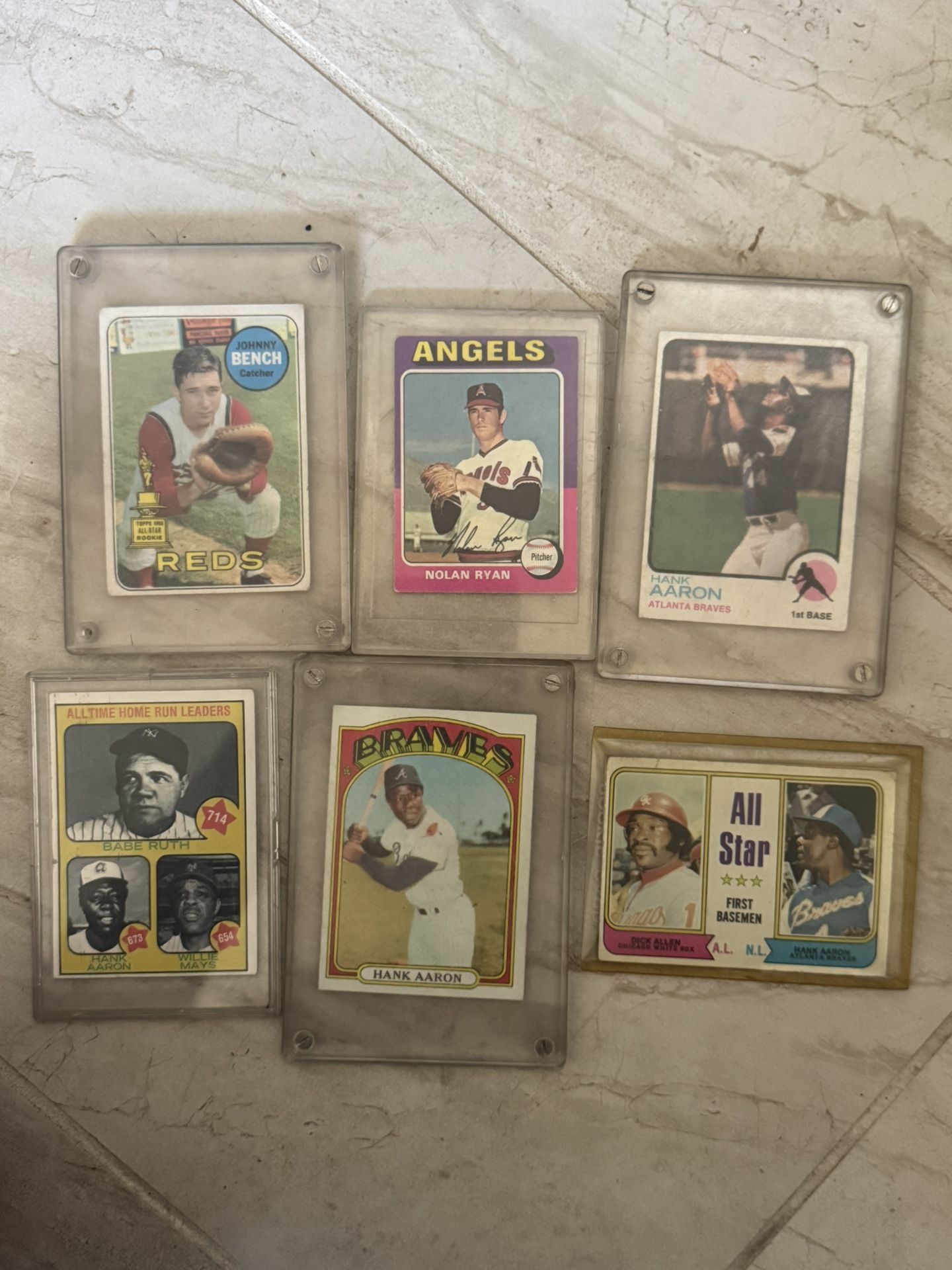 Vintage Baseball Cards Babe Ruth, Hank Aaron, Johnny Bench, Nolan Ryan