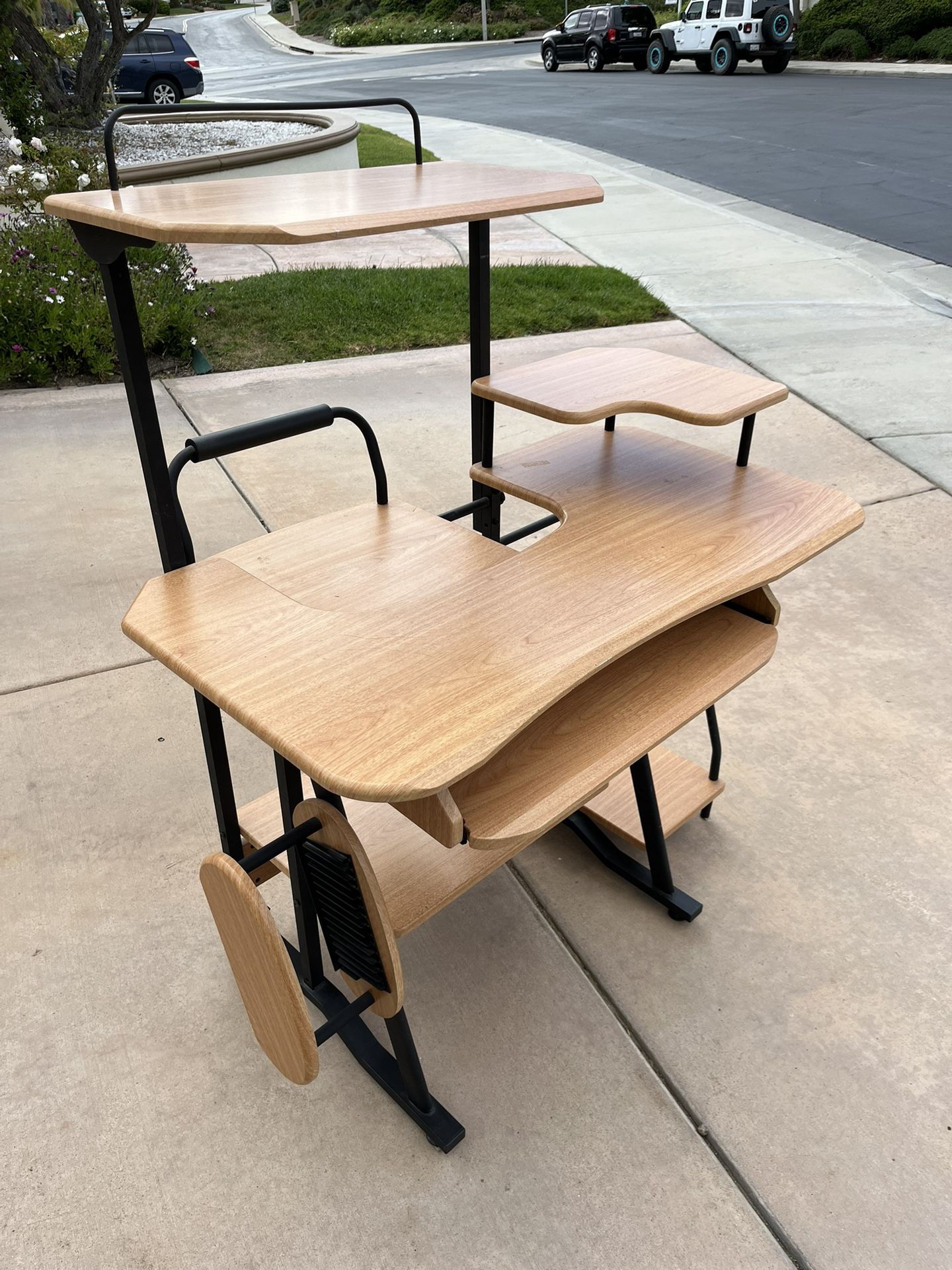 Multiple tier desk, has a CD storage on the side. In good condition. Measurements: W 3’7”, H 4’11”, Depth 34” $40 OBO