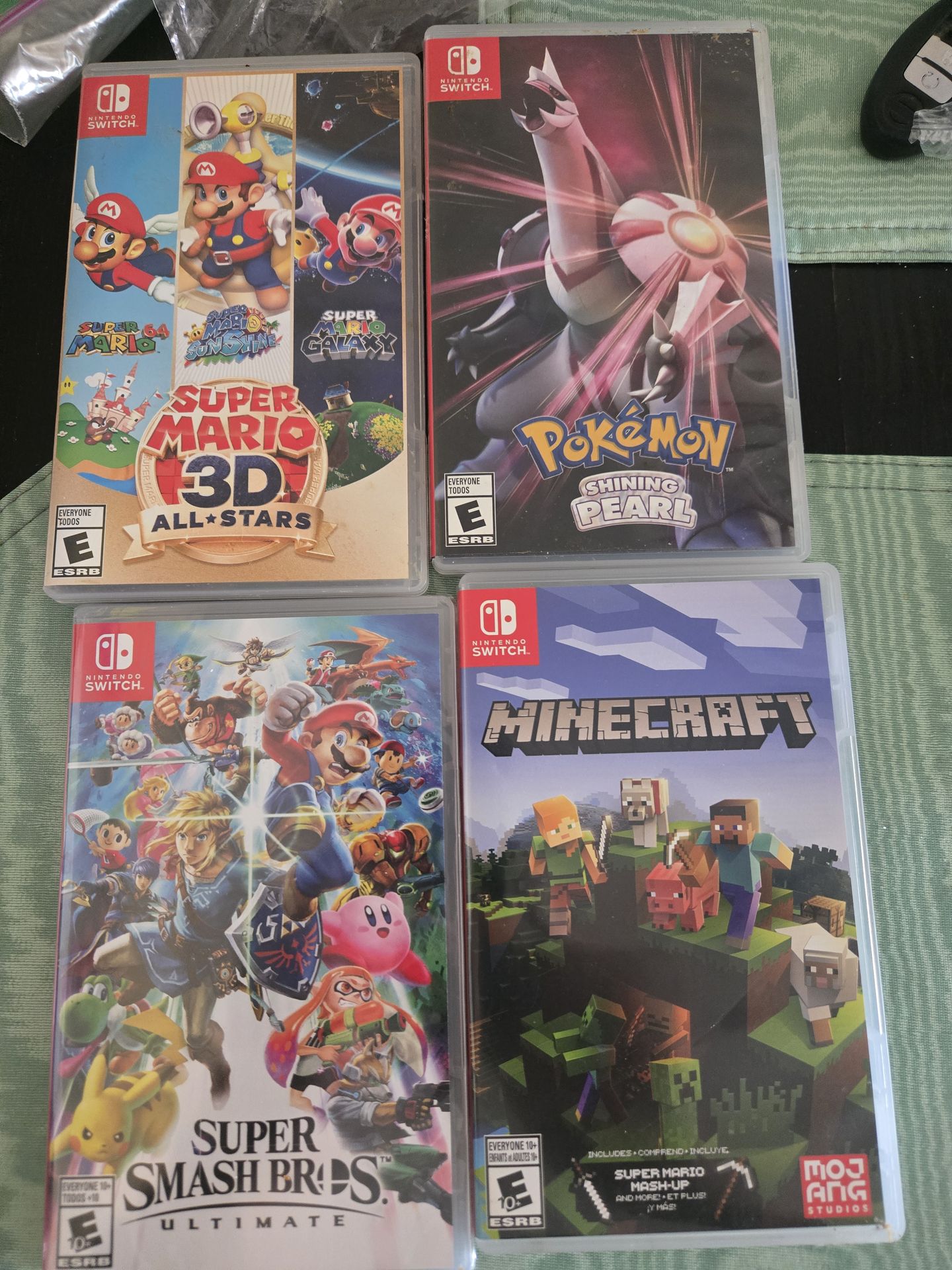 Selling games in used working condition Except Smash Bro, still brand new Mario 3D All Stars Pokemon Shining Pearl Minecraft