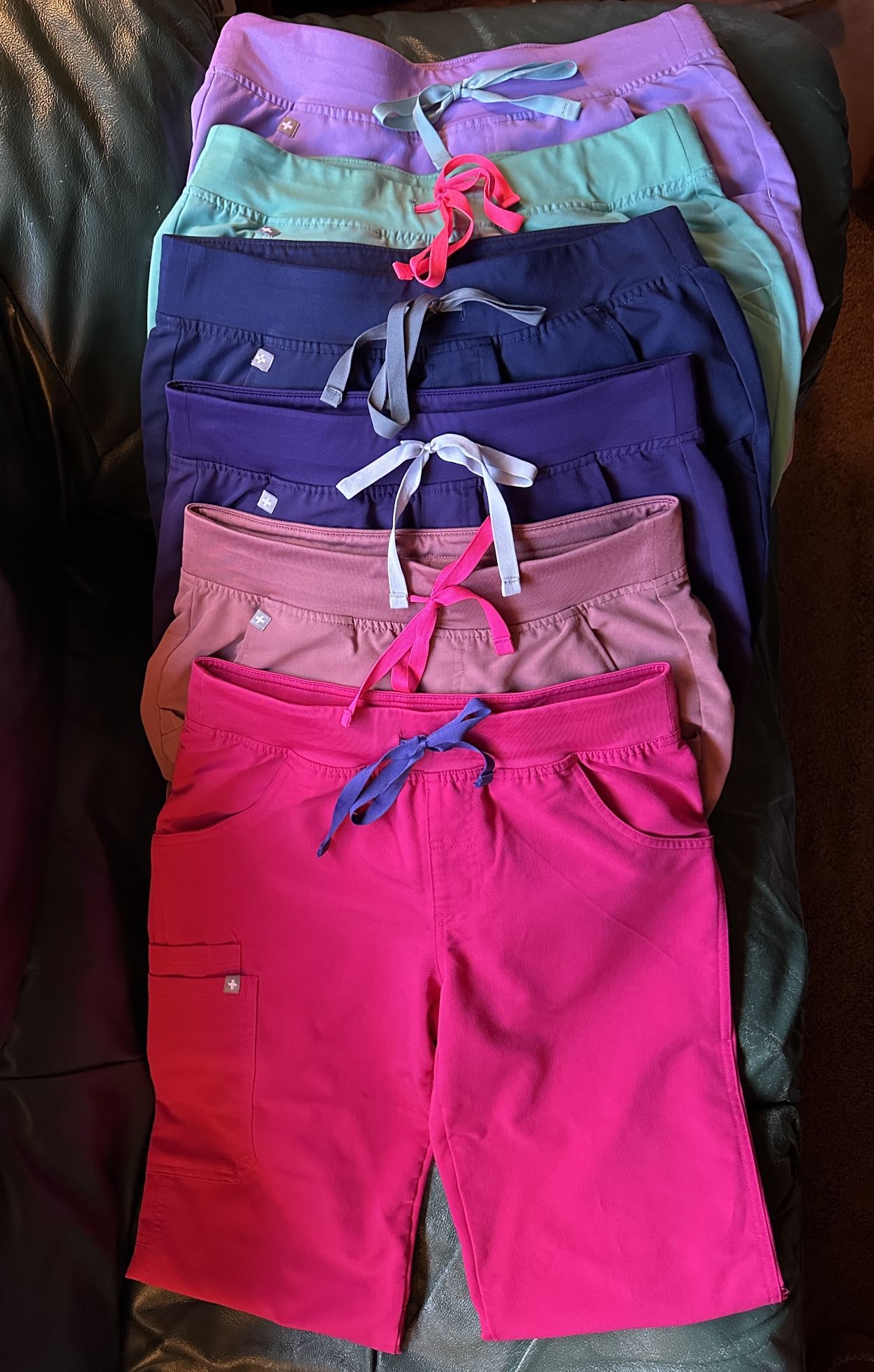 Lightly used FIGS scrubs worn in a clinical setting only. All items are in excellent condition with no stains, rips, fading, or odors. Practically like new. Each color (6 sets) includes a matching top and bottom except the royal blue bottoms. Selling because I am in nursing school and now required to wear school-approved scrub colors only. Please see photos for visual reference. Tops (Size Small ) • 5 Casma Three-Pocket Scrub Tops Colors: shocking pink, purple jam, mauve, navy, surgical green • 1 Casma One-Pocket Scrub Top Color: lavender Bottoms (Size Small) • 6 Zamora Jogger Scrub Pants Colors: pink, purple, mauve, navy, surgical green • Royal blue: pants only (no matching top) • 1 Kade Cargo Scrub Pant Color: pink Retail pricing new: $38 per top and $48 per pant. My asking price: • $55 per set • $30 Royal Blue pants • No trades • No low offers please Take everything for $300 Willing to meet near Oregon City/Molalla Message me with any questions