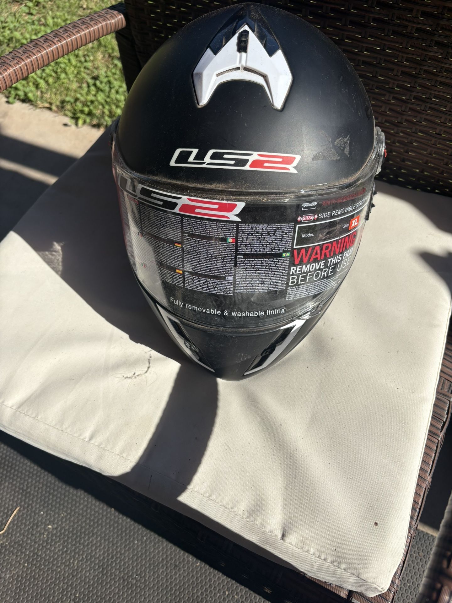 This is an LS2 FF387 full face motorcycle helmet in a matte black finish. It features a lightweight, aerodynamic tricomposite fiberglass shell. The moisture-wicking liner is fully removable and washable. The helmet has a wide eye port for great visibility. It includes a quick-release strap for easy on and off.