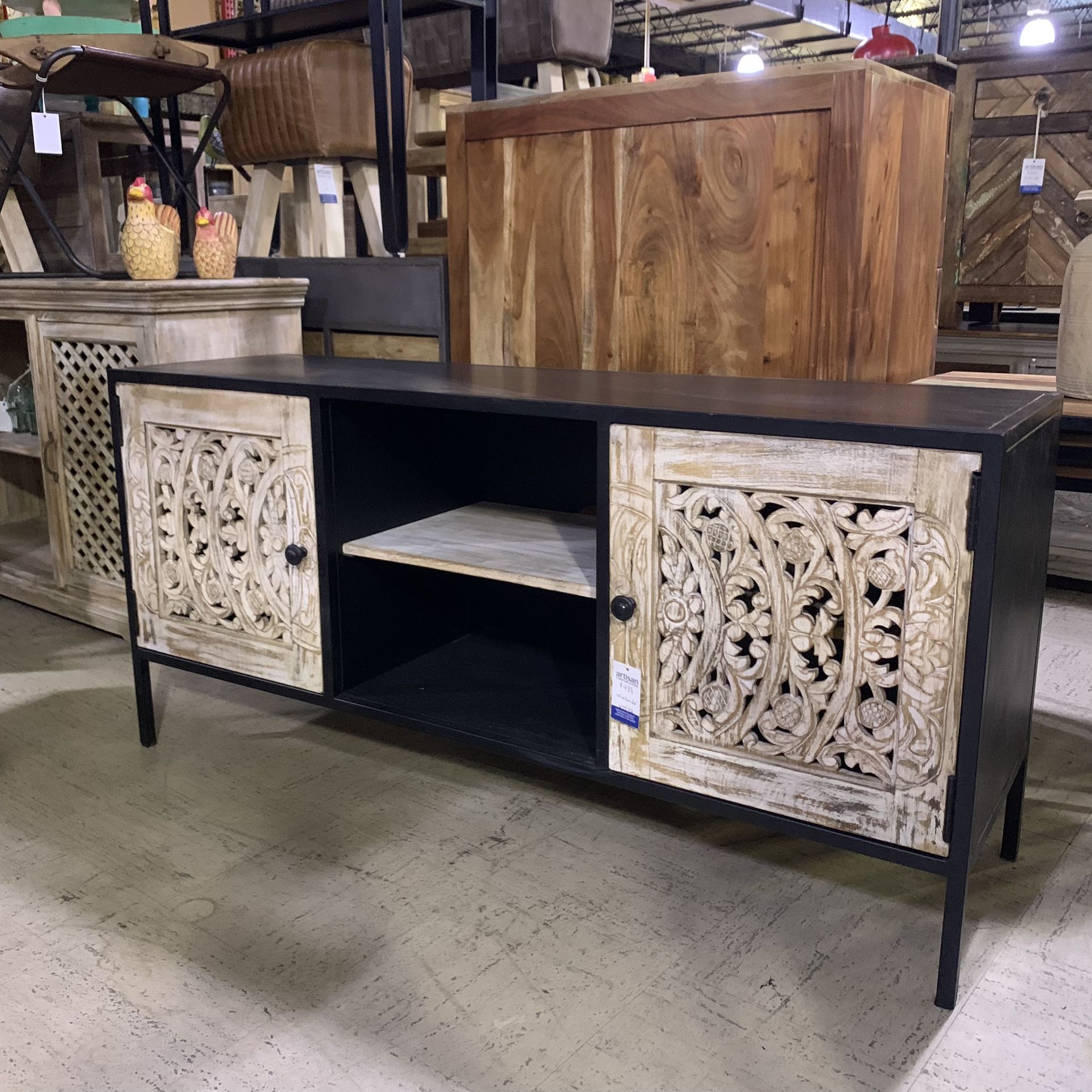 Industrial Media Cabinet. Item 675712. Measures 55x16x26”. $488. - #sideboard #buffet #credenza #storage #shabbychic #shabbychicdecor #tvconsole #mediacabinet #interiordesign #artisanfurniture #browardfurniture #florida #homefurniture #instadaily #instadesign #instadecor #southflorida #accentfurniture #diningroom #livingroom #entryway #furniture #bedroom #industrial #industrialdesign #transitional #homestyling #decorideas #rustic #rusticdecor