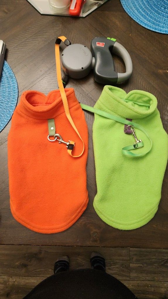 Double leash with locks Orange and green sweaters that fit 8 and 11 lb yorkies