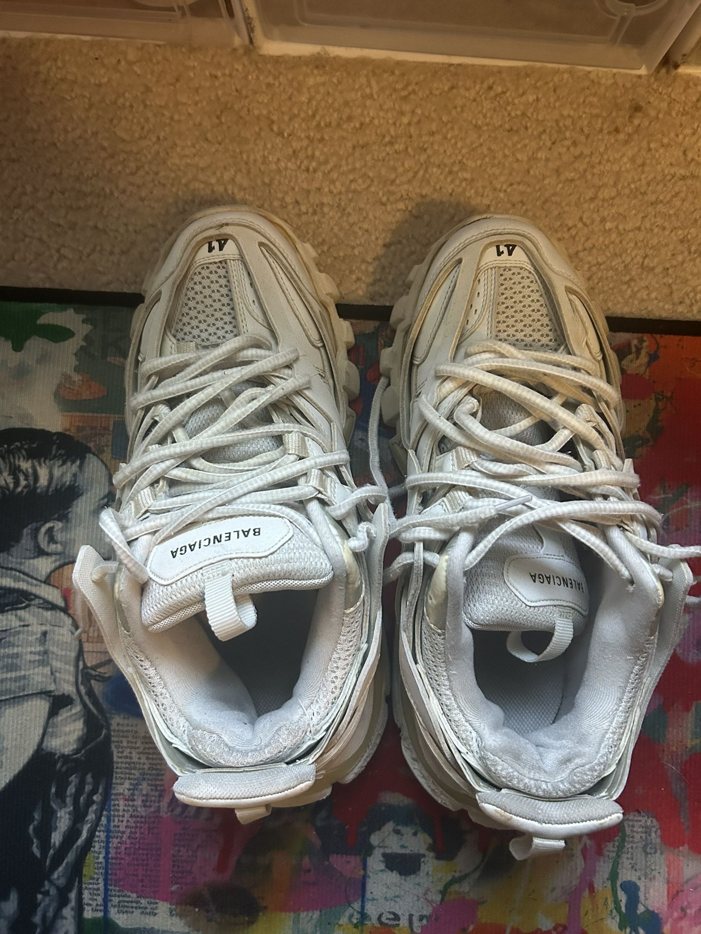 The Balenciaga Track 41 Neutrals sneakers are a stylish choice for men looking for a sporty yet fashionable option. With a neutral beige color and sleek sneaker design, these athletic shoes are perfect for adding a touch of luxury to any outfit. The UK shoe size of 7.5 and US size of 8 make them a versatile choice for a range of wear, while the EU size of 41 ensures a comfortable fit for many users. The Balenciaga Track 41 Neutrals are a high-quality product from the renowned Balenciaga brand, making them a must-have addition to any man's shoe collection.