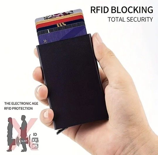 RFID Blocking Wallet, Front Pocket Wallet. Aluminum case up automatic pop up design