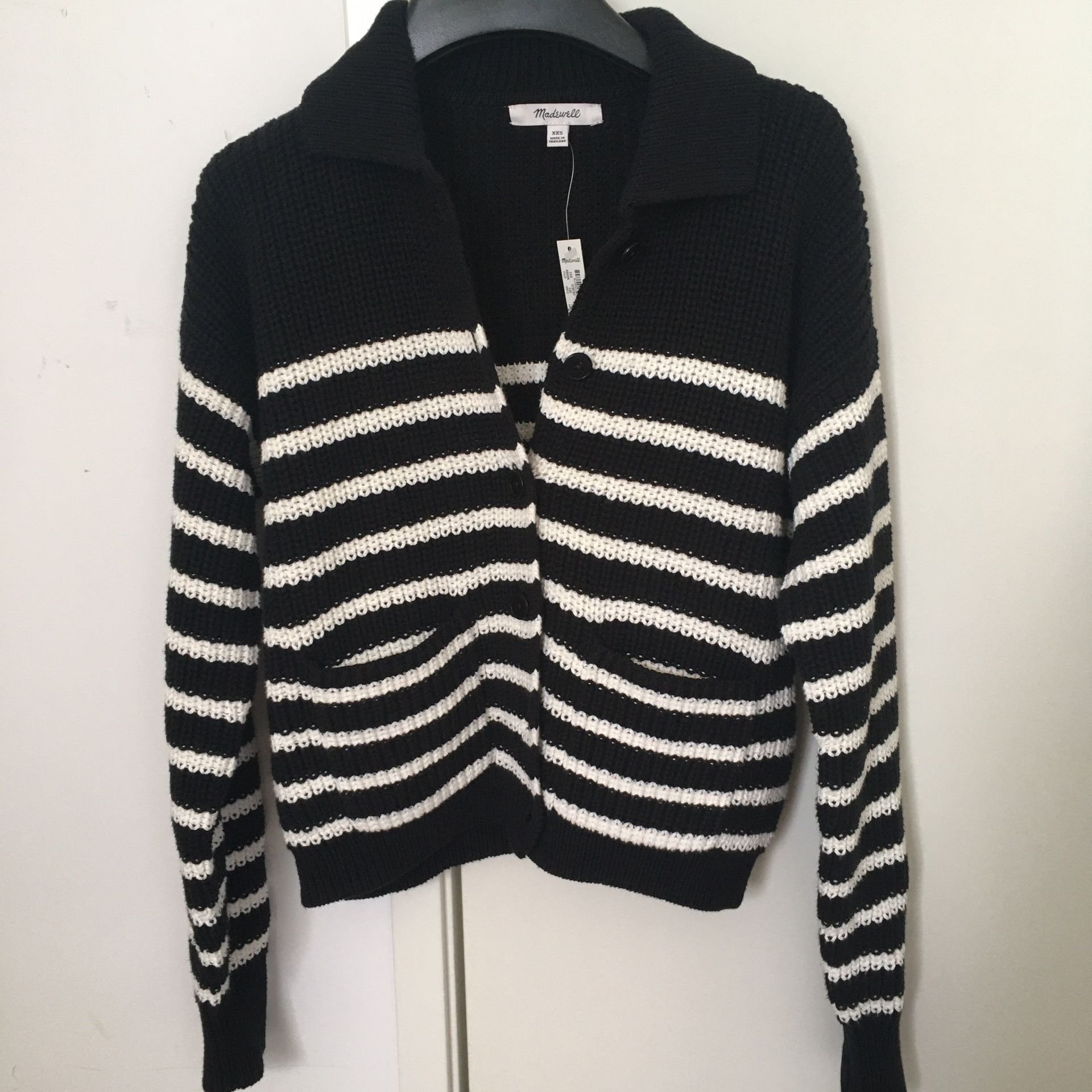 Madewell Ribbed Polo Cardigan Sweater black stripe NO966