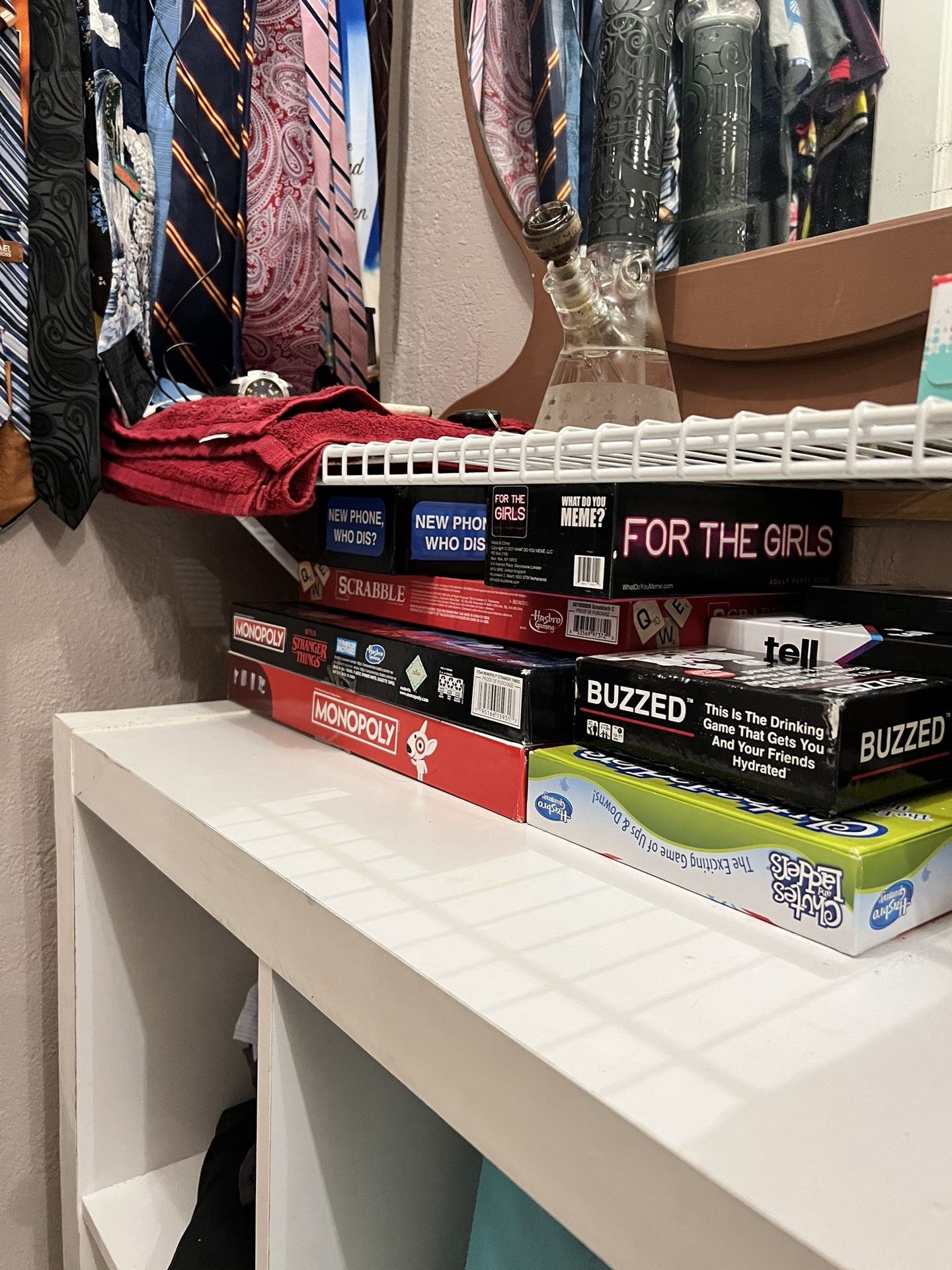 All used only once unfortunately Games available ; Monopoly (target) Monopoly (stranger things) Buzzed Tell me, without telling me For the girls Scrabble Uno $15 each ! Willing to drop off