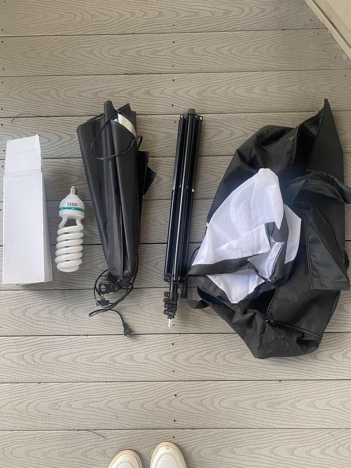 Greetings shoppers! For sale is a EDDSI softbox, with stand, 85W Light Bulb 5500K CFL Daylight Spiral Softbox Bulb. Selling because I have too many light stands and soft boxes. Selling for $60. Thanks for viewing !