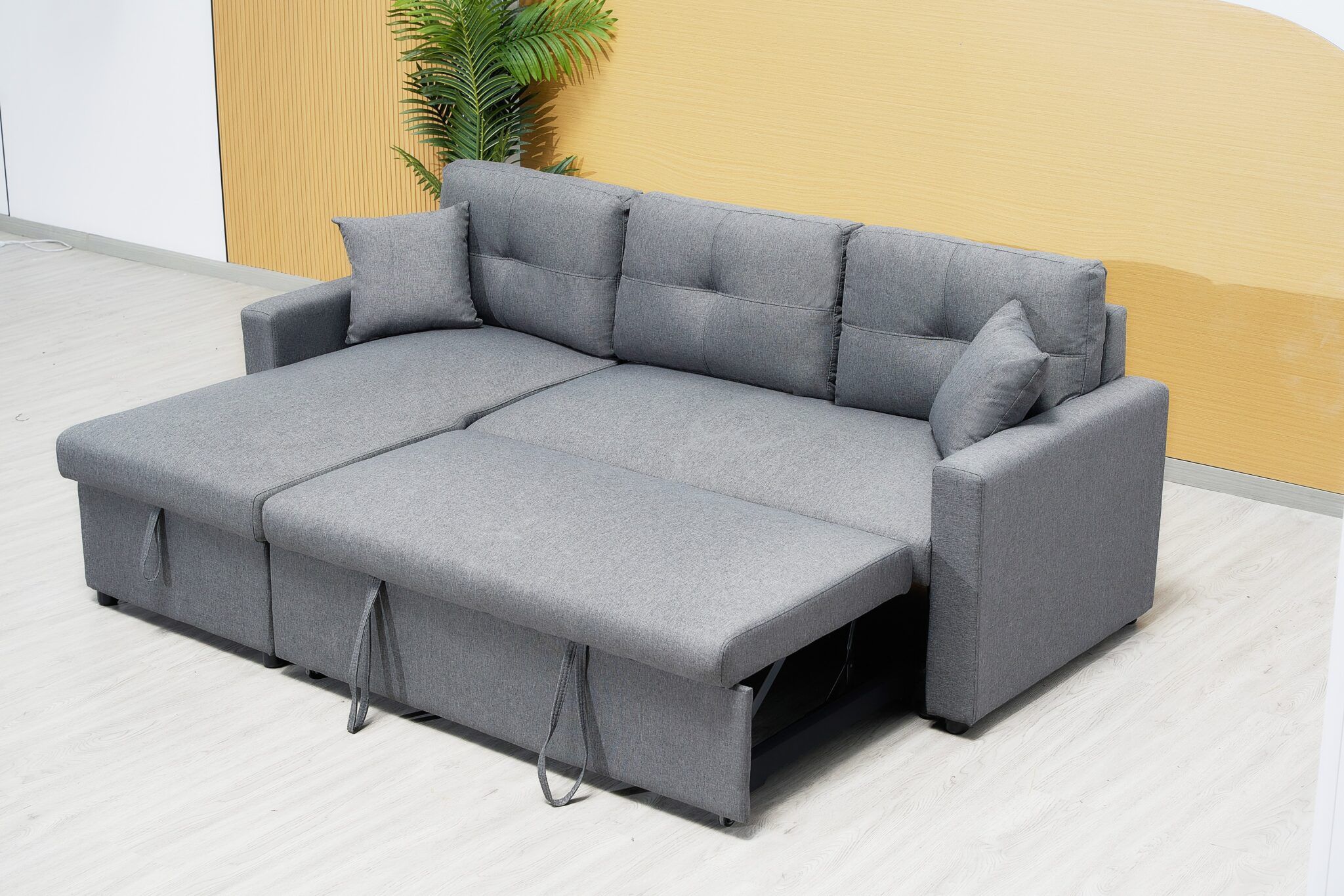 REVERSIBLE LIGHT GREY SOFA BED WITH STORAGE