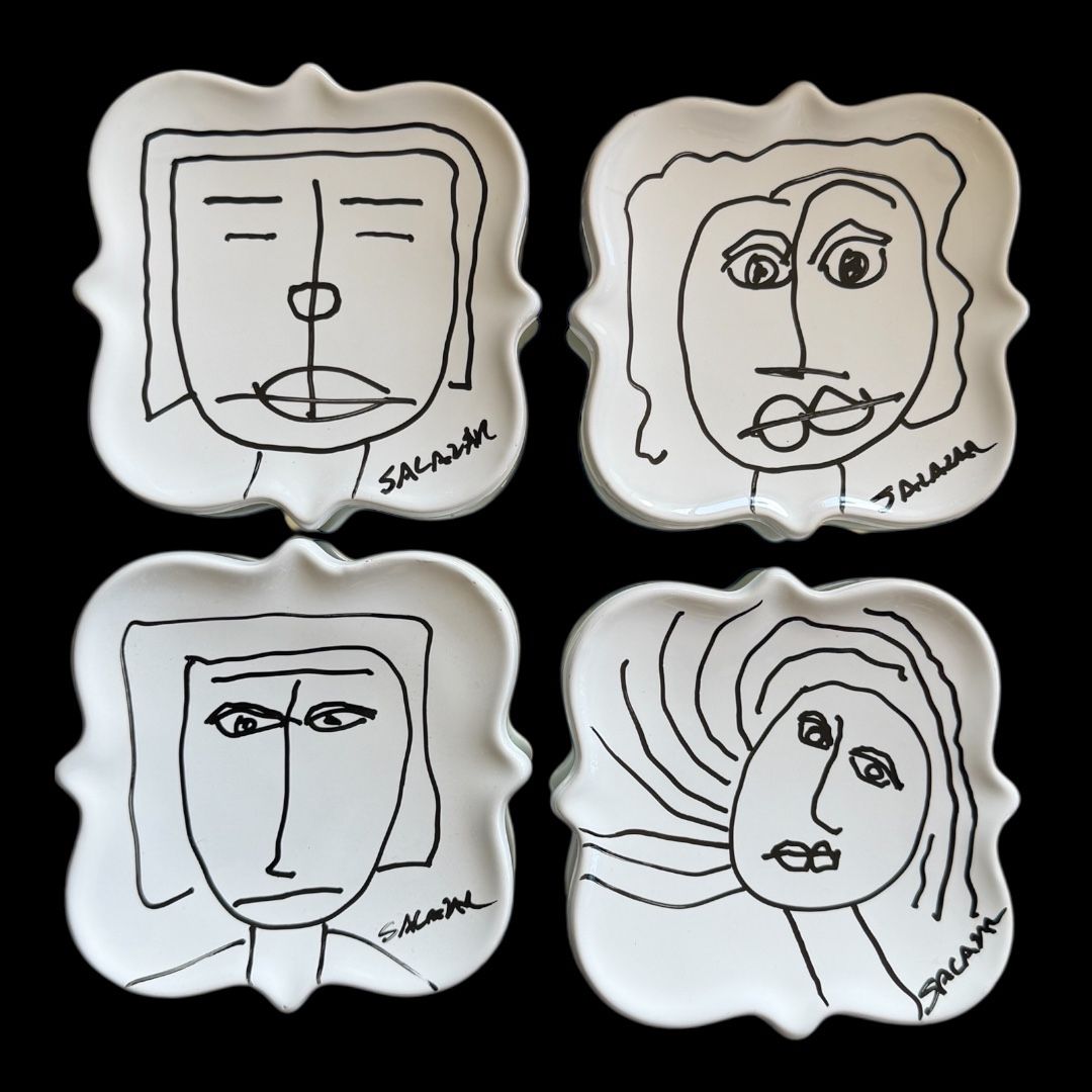 Authentic Torre & Tagus Coasters — Artist Enhanced by Salazar Authentic Torre & Tagus Coasters — Artist Enhanced by Salazar Set of 4 • list $199 Sale $89 Size: 4.5 x 4.5 inches Signature: Bottom right on each coaster This set features authentic Torre & Tagus ceramic coasters that have been artist-enhanced by Salazar. Each coaster was originally produced by Torre & Tagus, then hand-painted in Salazar’s signature portrait line style — transforming each piece into a unique, collectible artwork. These are artist-modified originals, created in Salazar’s home studio and ready to bring personality and charm from his home to yours. Beautiful for decorative use, gifting, or display. 🎁 A meaningful and affordable holiday gift. Use: Best as decorative coasters (not recommended for wet glasses due to the artwork).