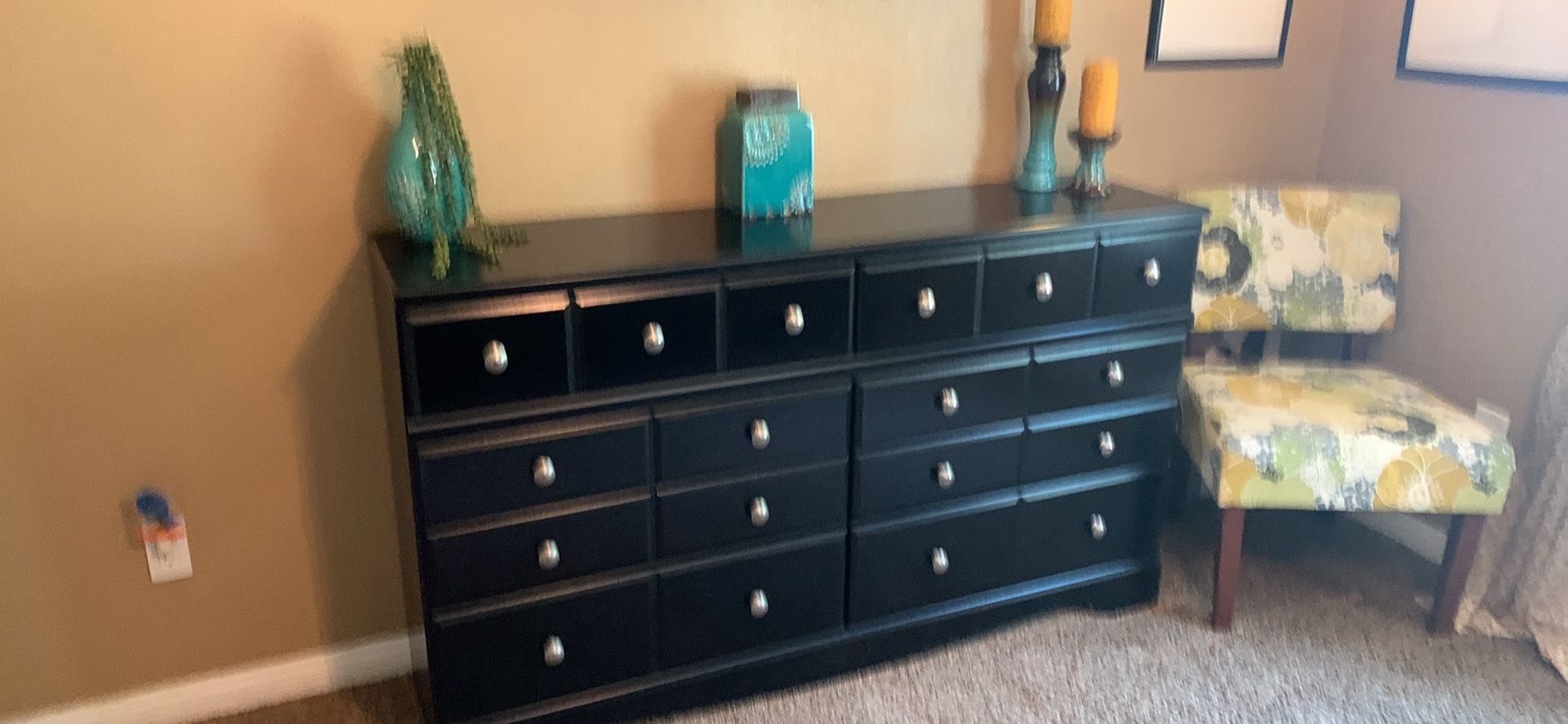 Dresser drawer black 6 drawer with silver knobs see photos for measurements