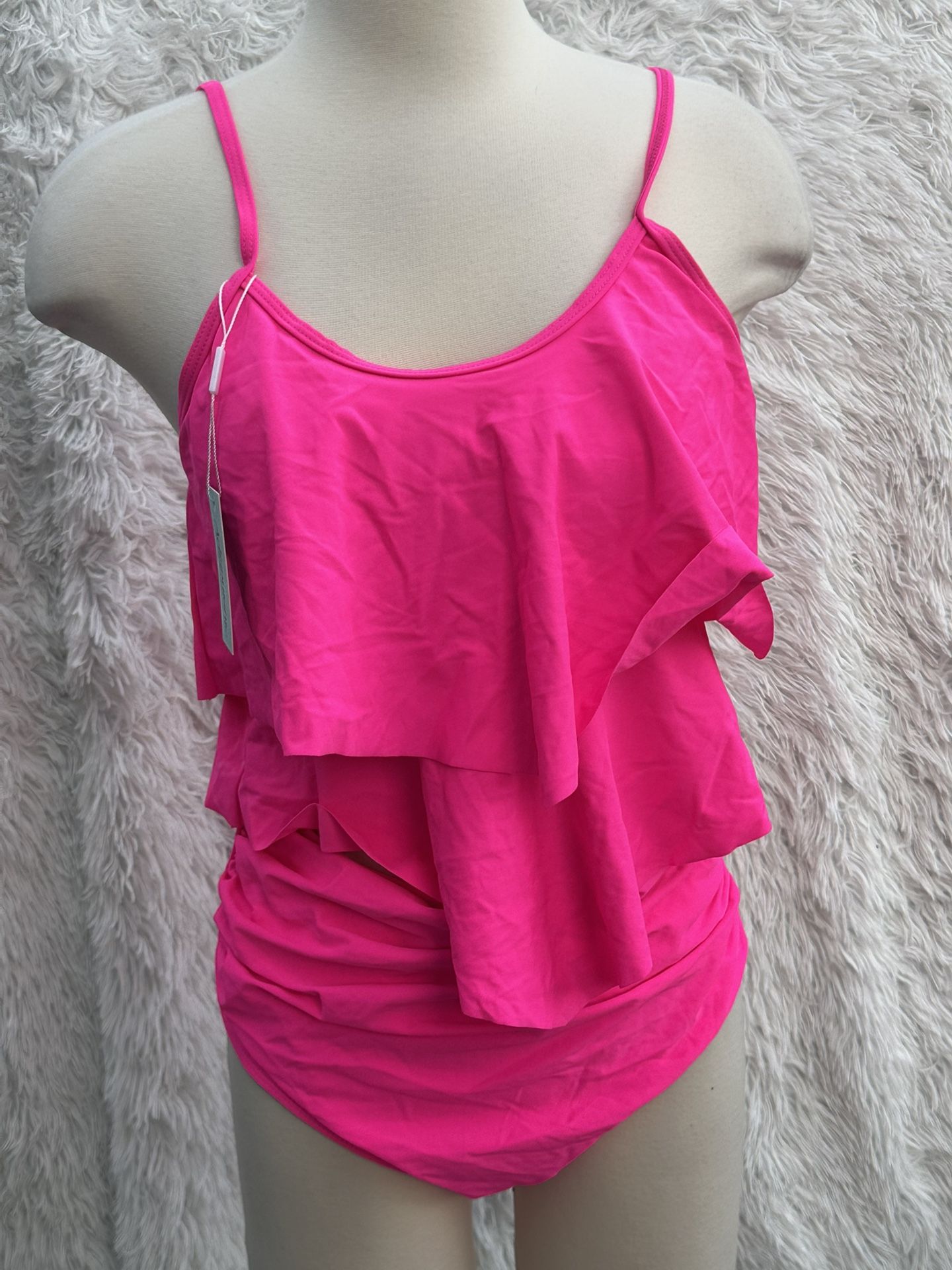 Brighten your wardrobe with this vibrant pink ruffle layered two piece set. Perfect for any occasion, this stylish piece adds a pop of color to your outfit. With removable padding #P2