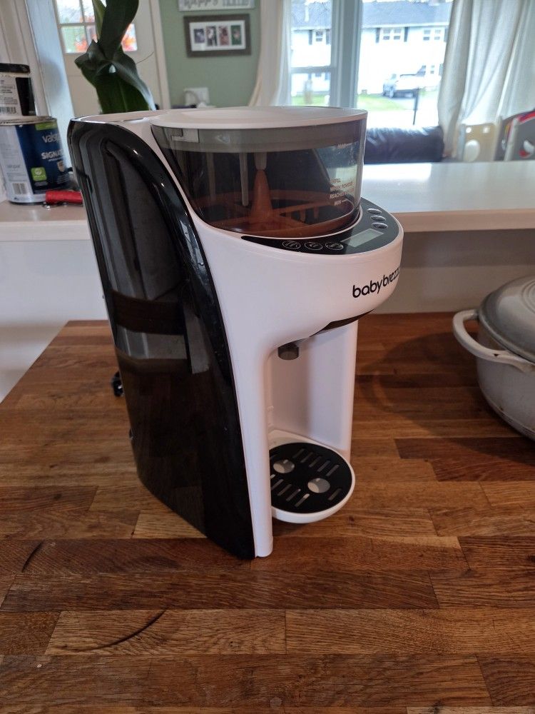 Used baby brezza. Works great and has been deep cleaned (be careful if buying from others as people dont realize water inside needs to be drained and could end up with mold inside). Has been my saving grace the last 12 months.