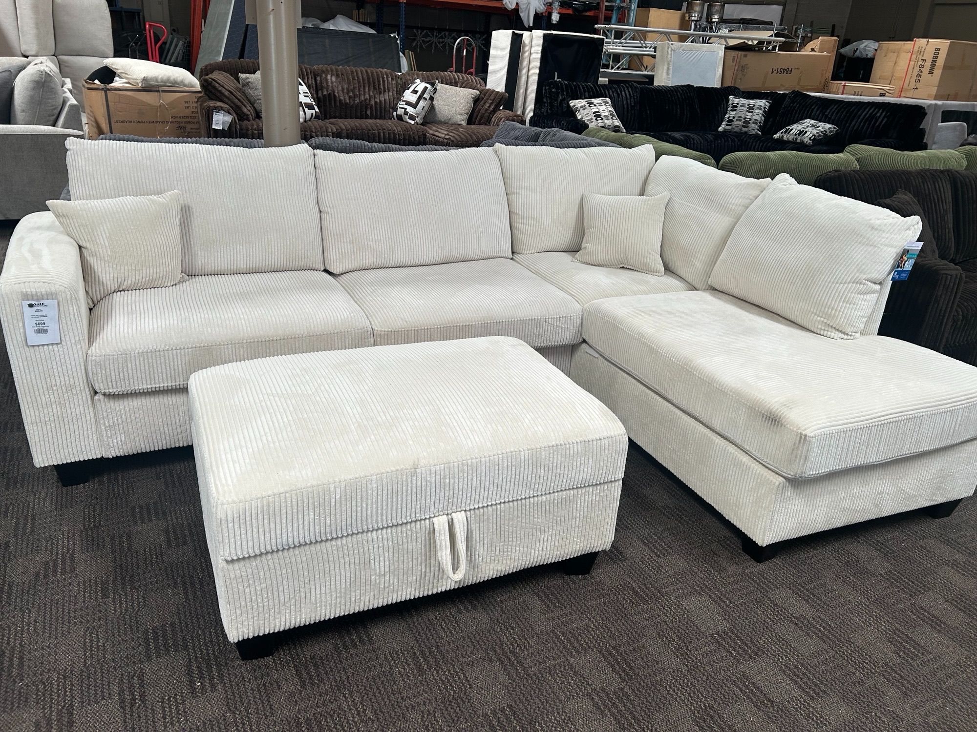 Brand new! Available in stock for quick pick up or delivery! 105" x 75" Stain-resistant fabric. Throw pillows included. No credit check, easy payment options! NO MONEY DOWN!