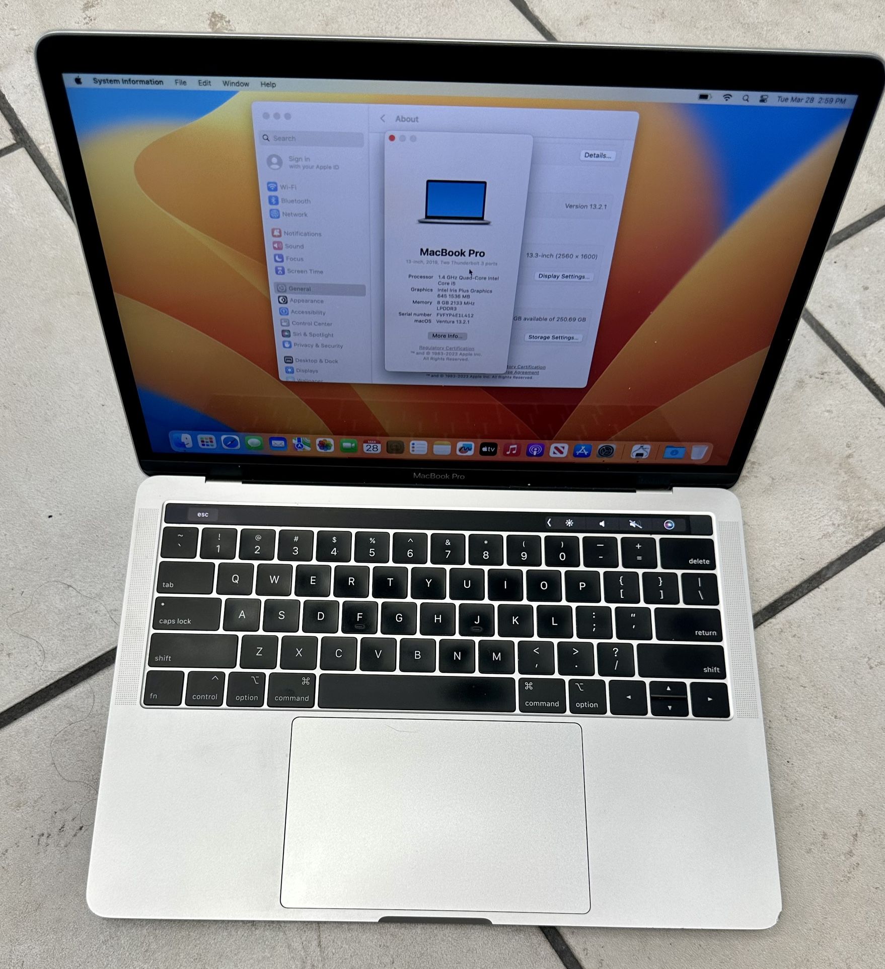 MacBook Pro 2019 Ventura OS Quad-Core Intel Core i5 Iris Plus Graphics 256gb flash drive