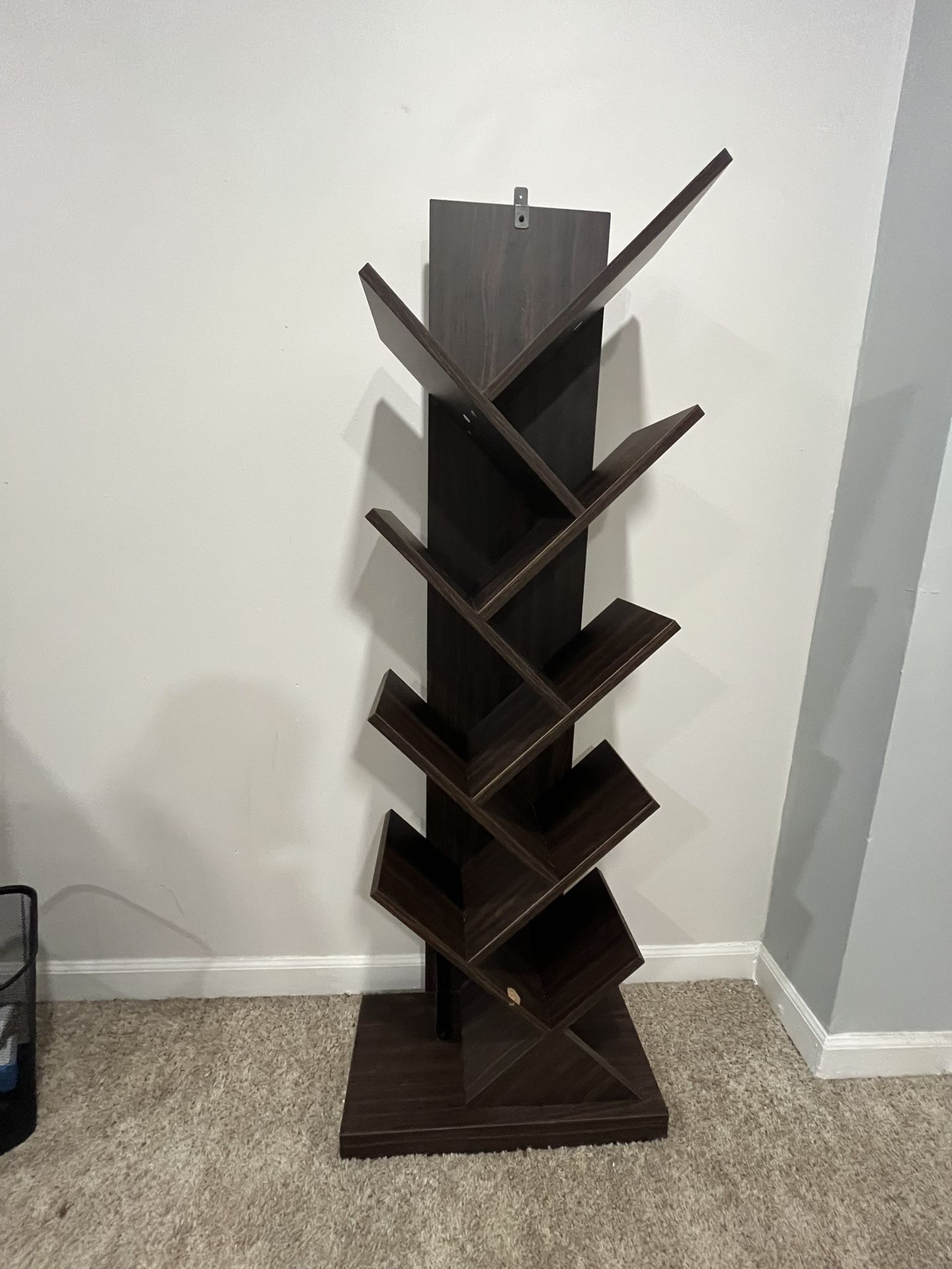Cool book shelf. Already assembled, when I assembled the first time I made a small tear which is shown. Throw on offer!!