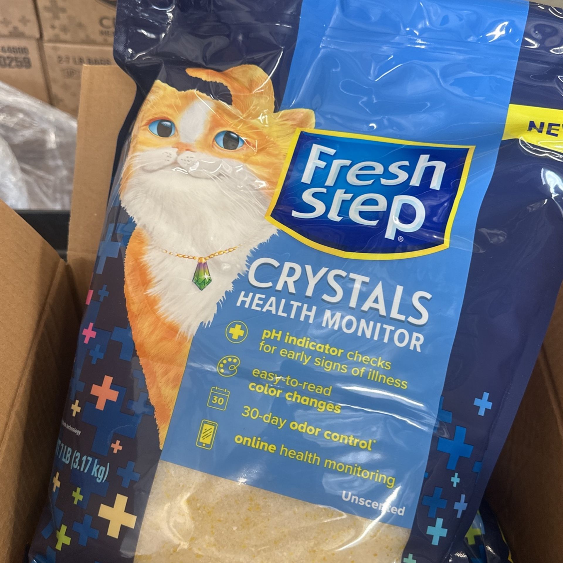 2 for $30 or buy more I’ll give you a bigger discount Sells for $30 EACH everywhere LIGHTWEIGHT CAT LITTER: Two-pack of 7 lb bags of Fresh Step Crystals Health Monitoring Cat Litter, which changes colors to help monitor your cat’s urine pH to better understand your cat’s health DETECT POTENTIAL ILLNESS EARLY: This pH-activated cat litter crystals changes color instantly to detect irregularities in your cat’s urine, which could indicate health issues like UTIs and acidosis ORANGE COLOR (LOW pH): Acidic urine could be a sign of certain types of bladder stones or acidosis DARK GREEN OR BLUE: Alkaline urine could be a sign of health issues like UTI’s, bladder stones or Feline Lower Urinary Tract Disease RED OR PINK: If red or pink, this could be due to the visible presence of blood and severe illness; immediately contact your vet for directions IF ATYPICAL: If the color of the kitty litter is outside the standard range, this could be due to diet or other factors not related to a health condition; if it persists, consider contacting your vet MANAGE YOUR CAT’S HEALTH ONLINE: Visit https://offerup.com/redirect/?o=RnJlc2hTdGVwLmNvbQ== to get help interpreting your cat’s litter usage, access helpful highlights about pH urine from a veterinarian, and more LIGHTWEIGHT AND EASY TO USE: Crystals litter is lightweight and easy to use; one bag equals 25 pounds of traditional clumping cat litter and is easy to pour POWERFUL 30-DAY ODOR CONTROL: Unscented cat litter with Ammonia Block Technology helps control odors for up to 30 days, keeping the cat litter box clean and smelling fresh between changes A VETERINARIAN RECOMMENDED BRAND: This innovative health monitoring litter was created with your cat’s health and happiness in mind by Fresh Step, a veterinarian recommended cat litter brand