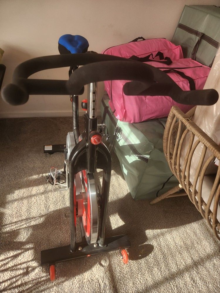 40 pound flywheel. No digital components, just a basic adjustable bike with a leather stopper. Pedals convert for use with shoes made specifically for cycling. Moving out of state and will not have space for this item. Comes with additional seat cushion. Third floor apartment, no elevator.
