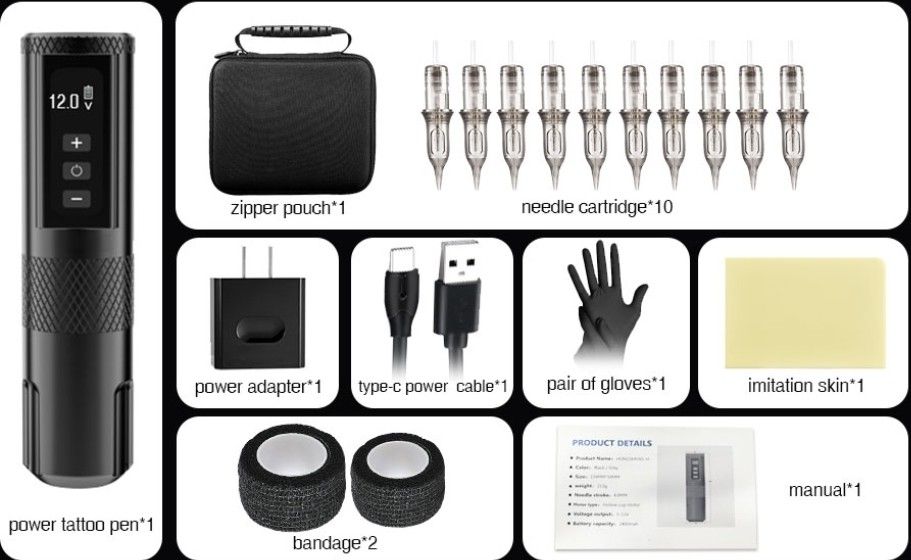 Wireless Tattoo Gun Kit with 70 Levels Speed Adjustable Tattoo Pen 2400mAh Power Digital LED Display Tattoo Machine for Professionals and Beginners Tattoo Artists. -water resistant Pick up only.