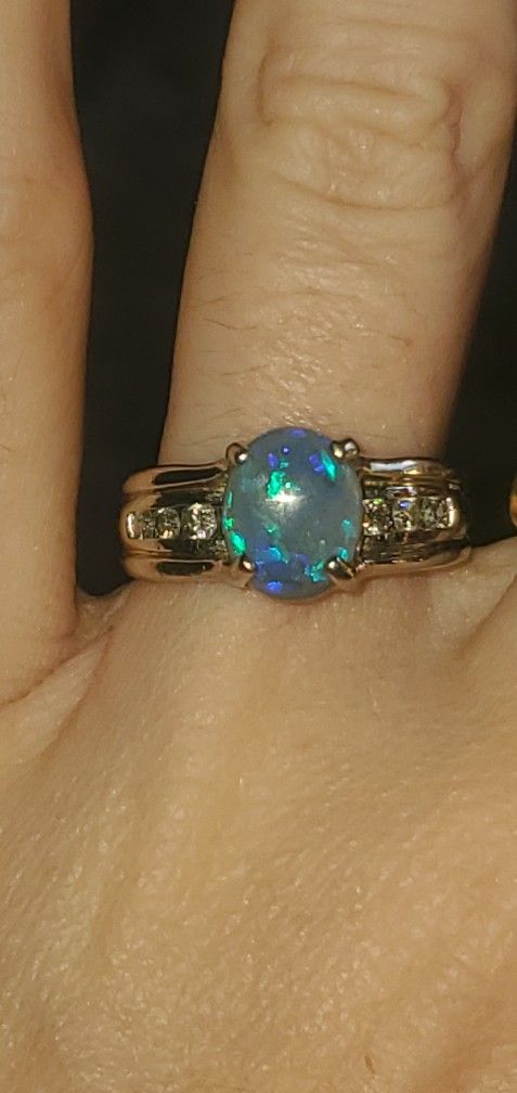 Platinum Blue Opal Ring With Diamonds. Heavy