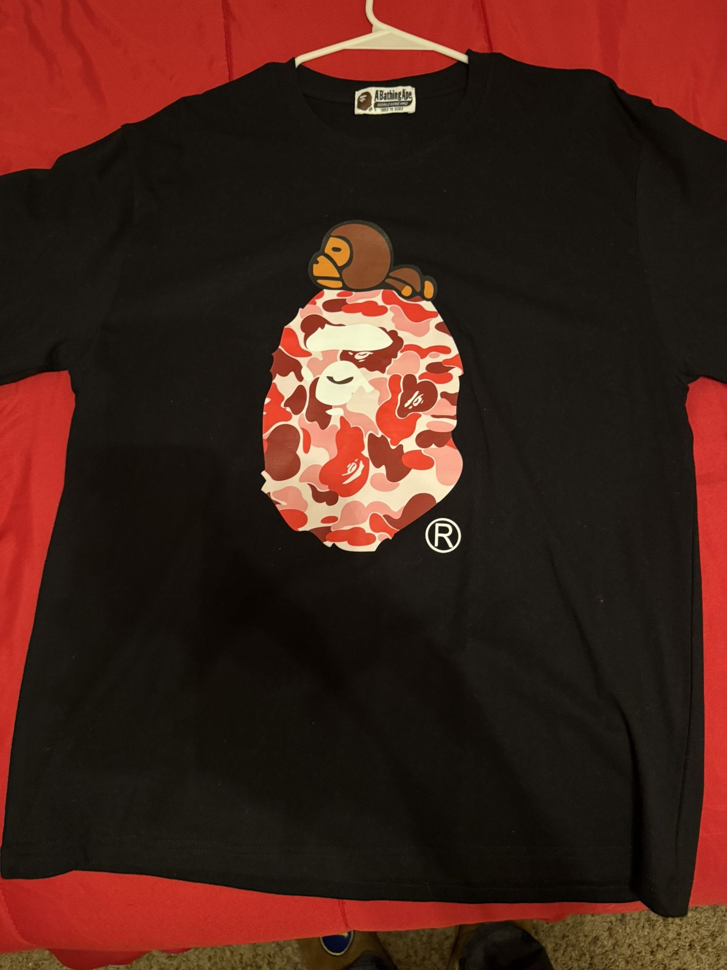 Brand new bape shirt never wore just put on hanger Not asking for much lowest I can do is 40 come take it off my hands Won’t respond to is this available or lowballing come ready to buy if not leave me alone!!!!