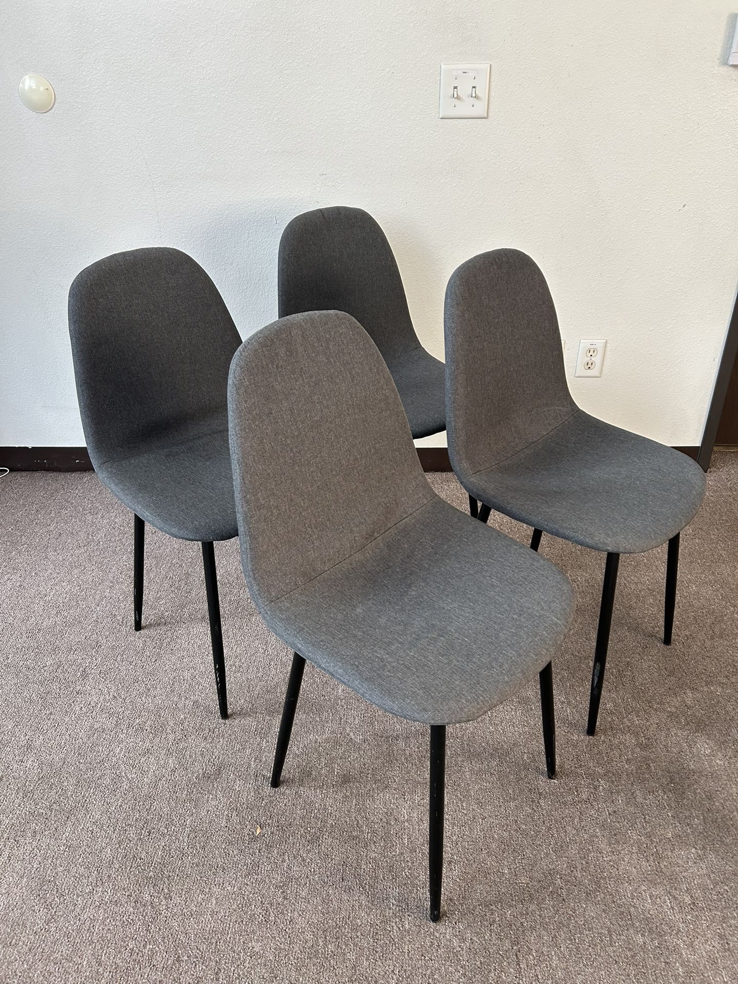 Charcoal Cushion Living Room Chairs – Set of 4 Set of 4 charcoal cushion living room chairs, sold together as a complete set. Details: • $40 for all 4 chairs • Sold as a set only • Pick-up only • Payment accepted: Cash or Zelle • If interested, please call (contact info removed) Great deal for a comfortable and stylish chair set!