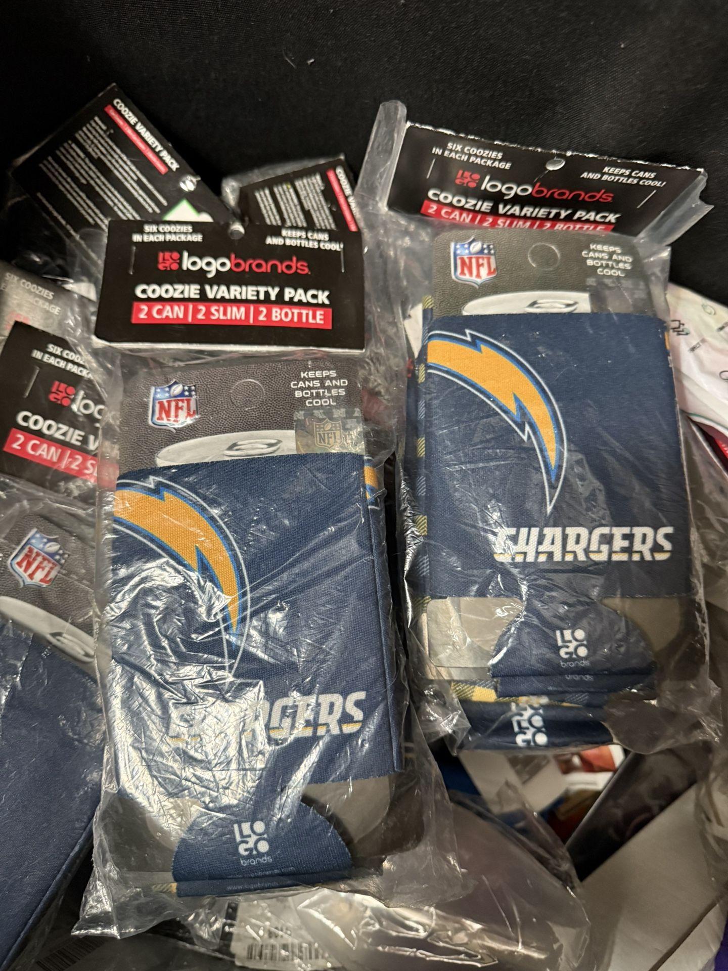 New $5 each pack NFL Los Angeles Chargers 6 Beer Can Coozies 2 Can 2 Slim 2 Bottle Zip Up Coozies