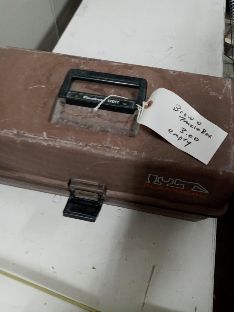 BROWN EMPTY FLAMBEAU TACKLE BOX. $3.00