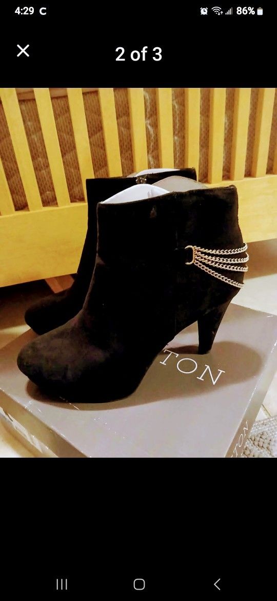 Suede Black Boots with gold chains Comfortable Size 10 Perfect condition