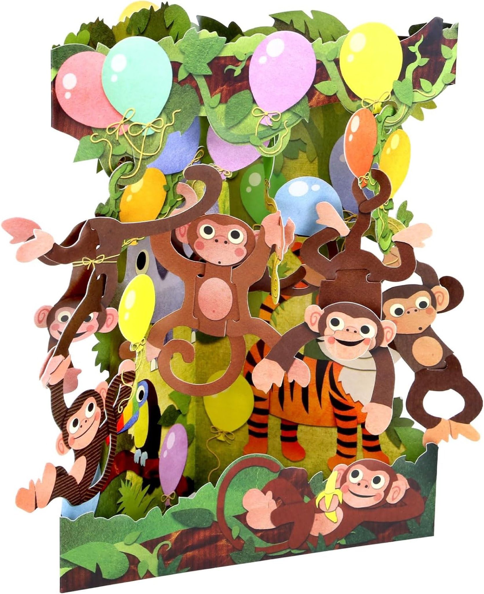 Santoro Interactive 3D Swing Greeting Card, Monkey Party