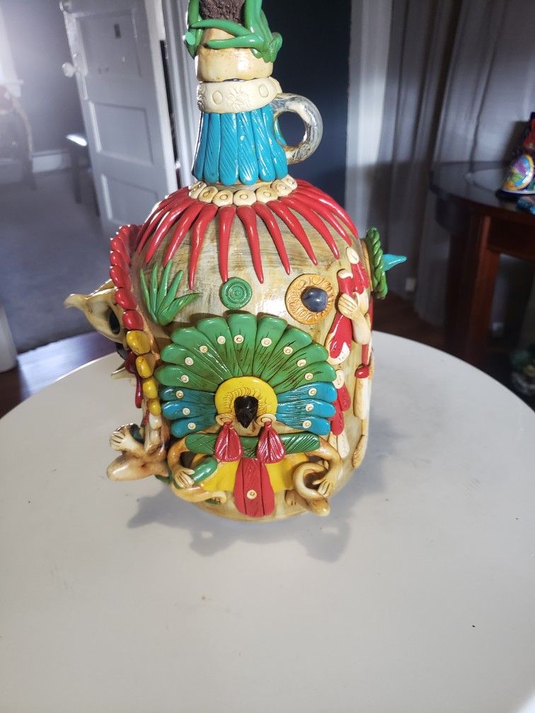 Botella vinera ,artesania mexicana con lados de diferente diseños