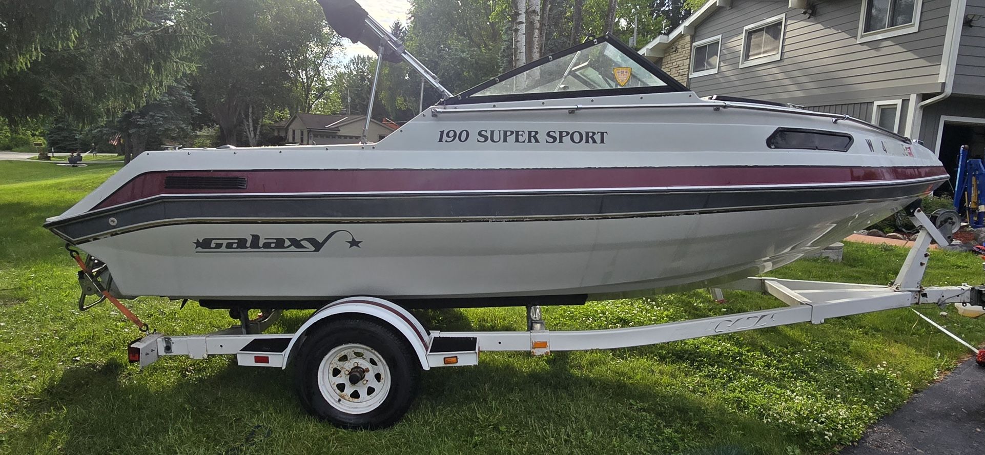 This is a 1990 Galaxy 19 foot 190 sport the Volvo penta motor in it runs good. I haven’t driven in a couple years but it worked last time was used. I’m asking $2000 cash .honey cash firm on price 1990 galaxy 19 foot Clean title If you have any questions or wanna come check it out Call or text me @ Scott (contact info removed) Contact him if you have any questions or concerns I'm asking $2000 firm on price If you have any questions or concerns reach out to me Scott (contact info removed)