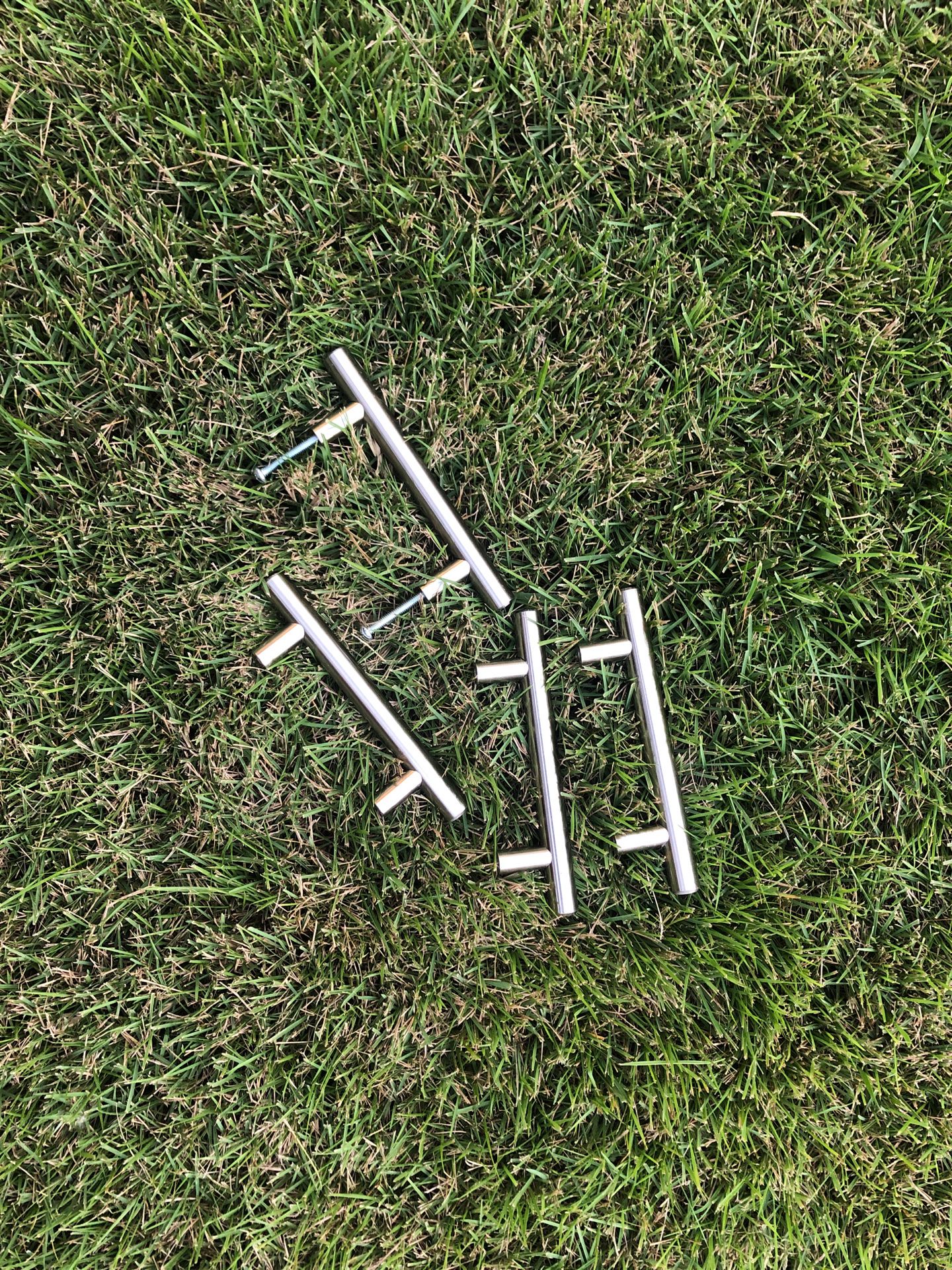 Brand new kitchen cabinet pulls. 36 pulls all together. Will sell individually or in bulk. Brushed silver. Discount applies if you buy multiple pulls. Message me for details.