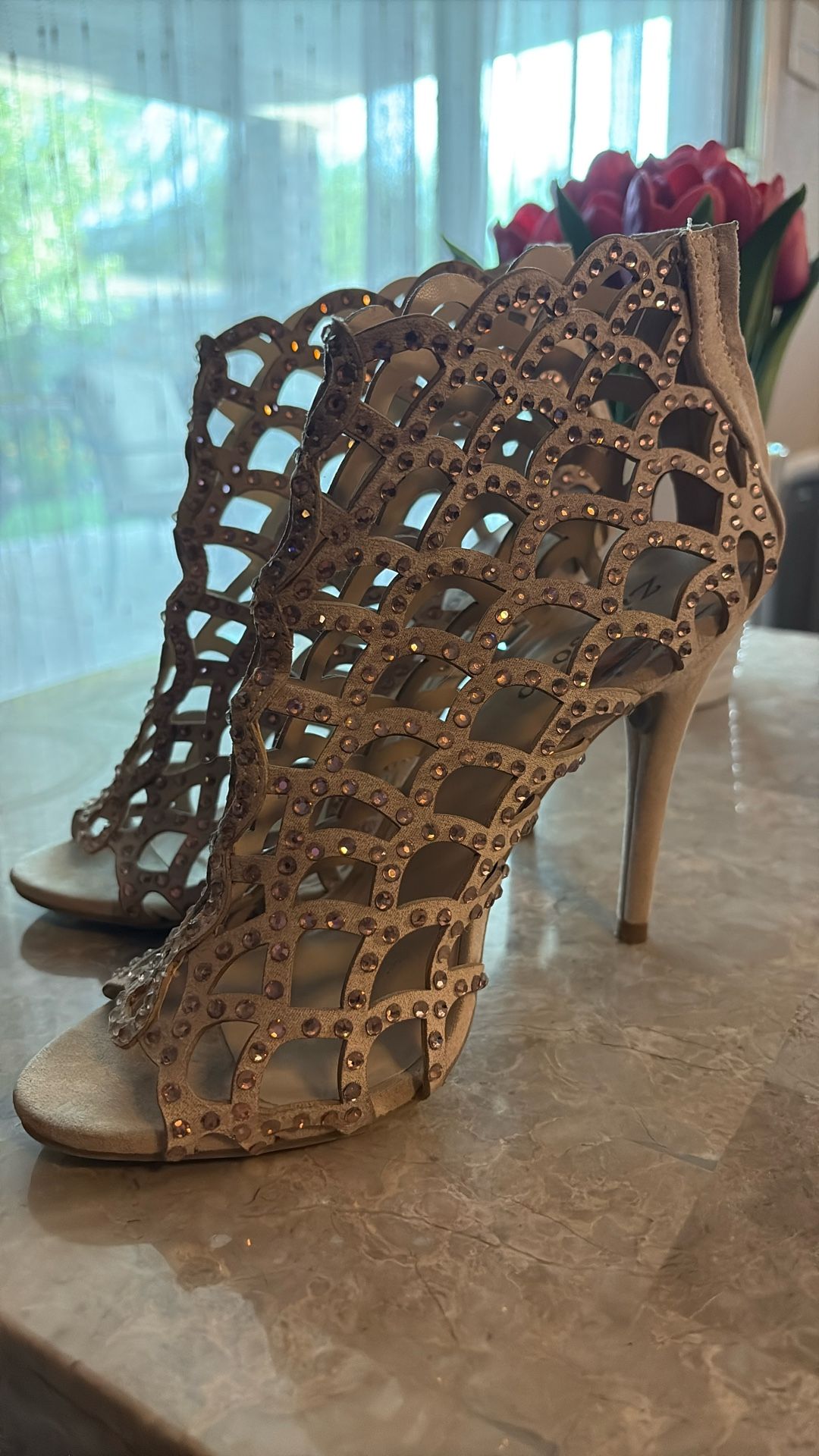 Tan Crystal Caged Shoe Worn once Size: 7.5