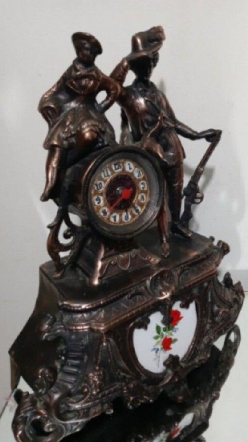 VINTAGE - VICTORIAN HUNTER COUPLE SCULPTURE CLOCK, WORKS WITH A DOUBLE AA BATTERY.