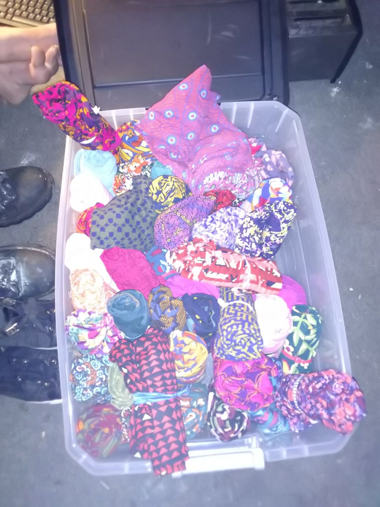 One size fits all... Then I have another bin just like this one in a larger size I'm selling them for $15 a piece they are $40 brand new and if you want to buy more then 10 pairs I'll drop the price to $10 each and if your looking to buy the whole bin make me an offer and we will go from there. Thank you