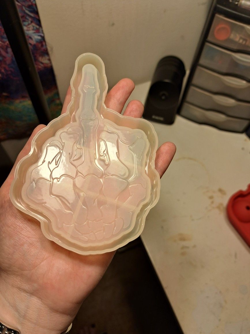 Skeleton middle finger resin mold, moon and star tray resin mold, small crystal resin mold. $5 /each