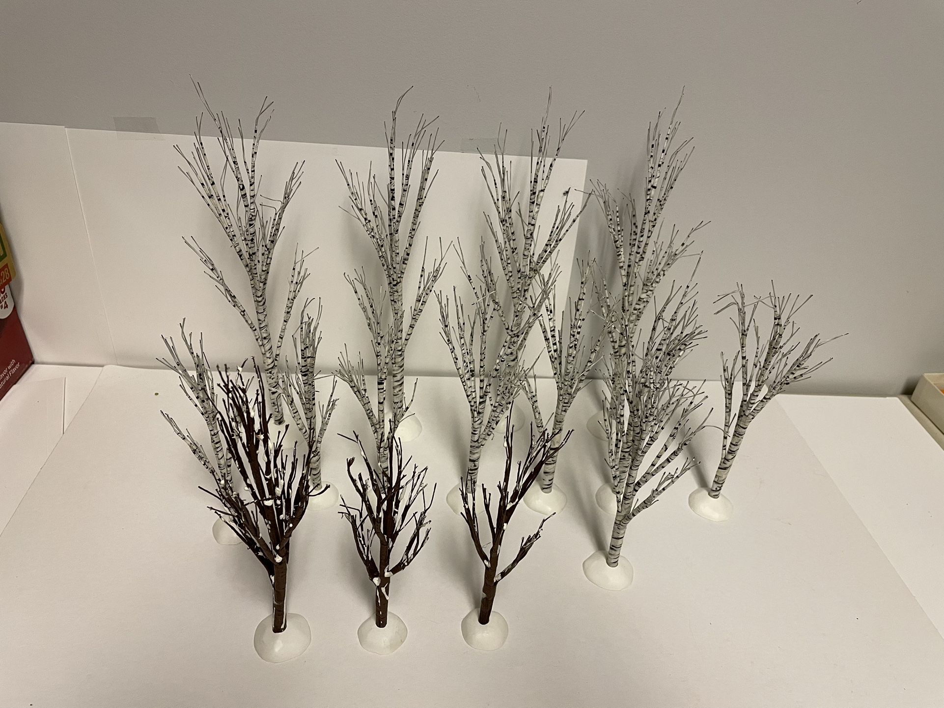 Dept 56 White Base Branch Winter Tree Village Accessory Christmas Set 15 Pieces