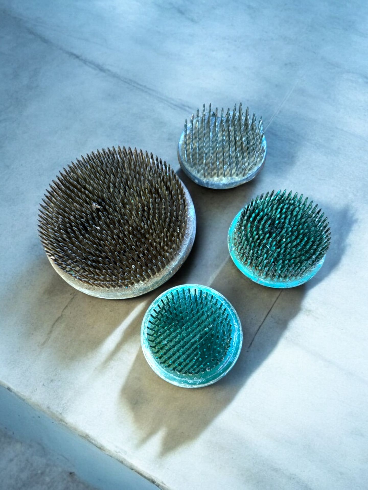 For the green thumbs among us. These metal floral frogs will get the job done as you well know. We have one large and 3 smaller frogs. If you have questions please ask. They are heavy. If the postage is too high, contact me and I will check with another carrier for a lower shipping price. All of our listings are Or Best Offer.